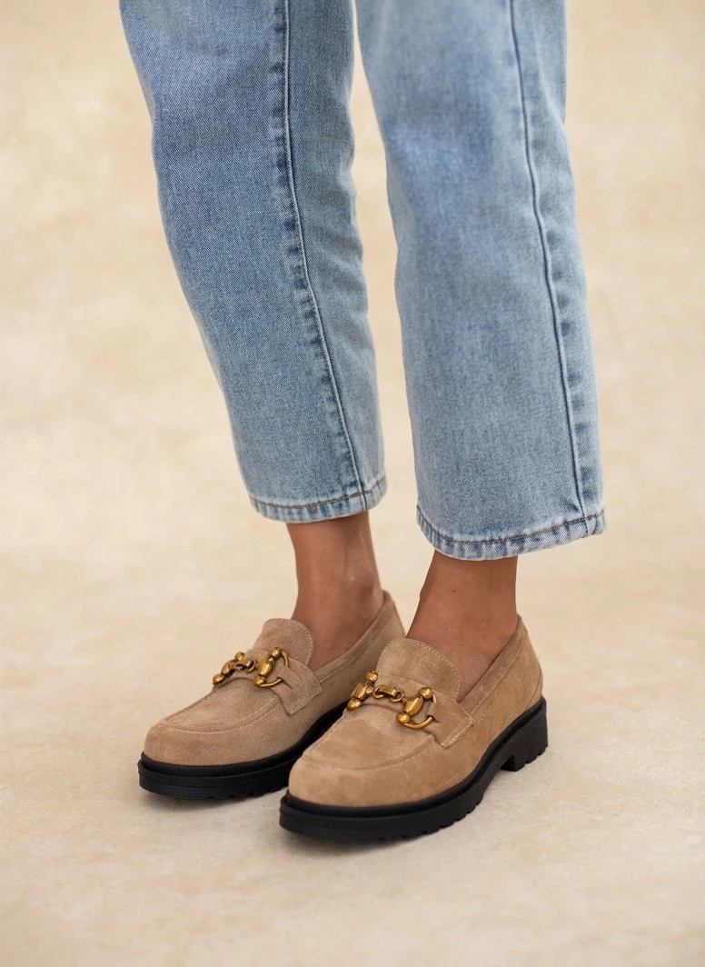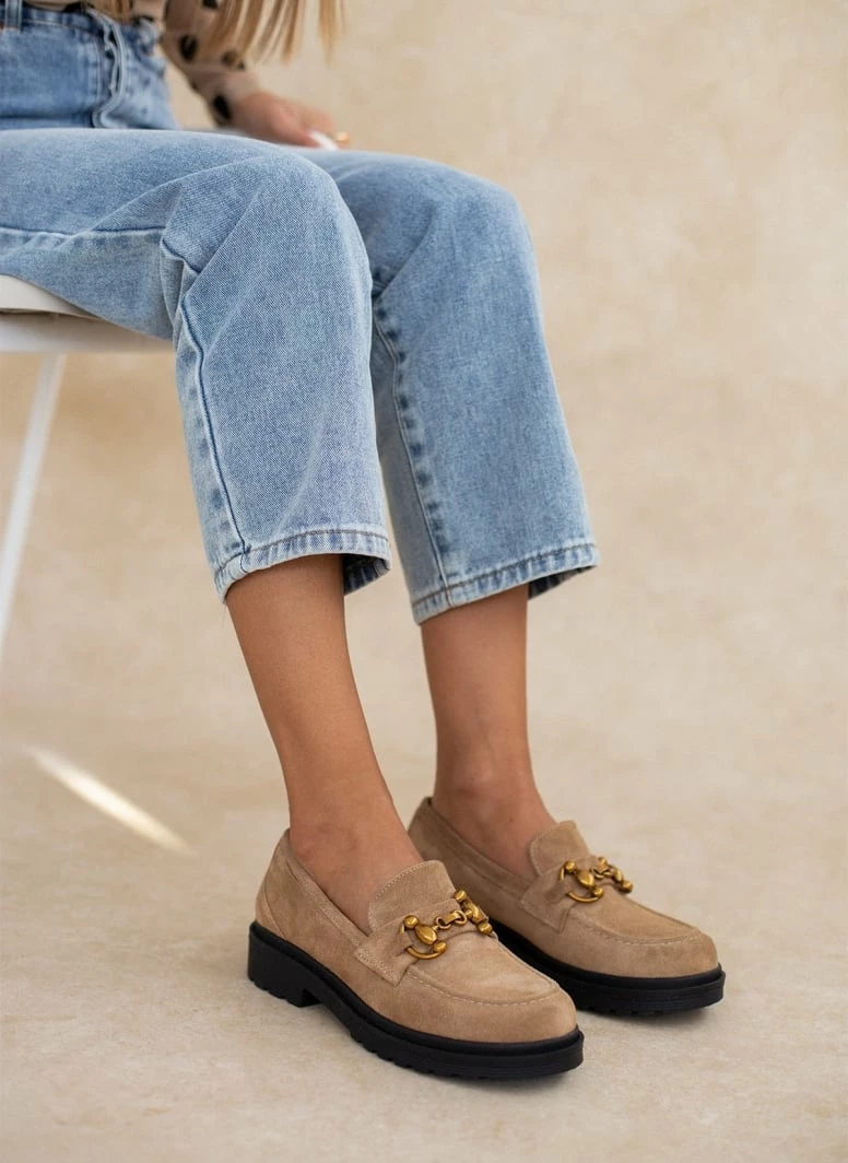 Loafers chunky tfp με μεταλλικό διακοσμητικό. Δέρμα καστόρι. Ελληνικής κατασκευής.