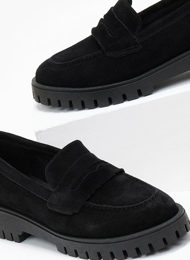 Loafers estil από δέρμα καστόρι με τρακτερωτή σόλα. Δερμάτινος πάτος. Ελληνικής κατασκευής