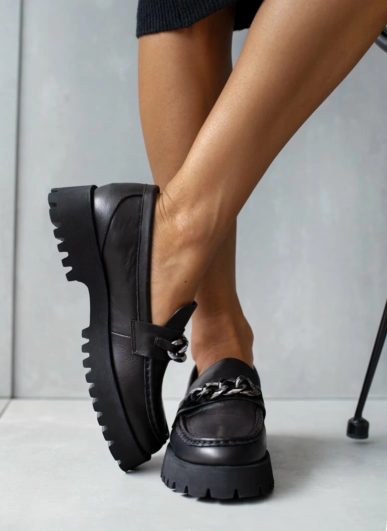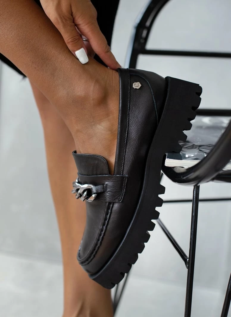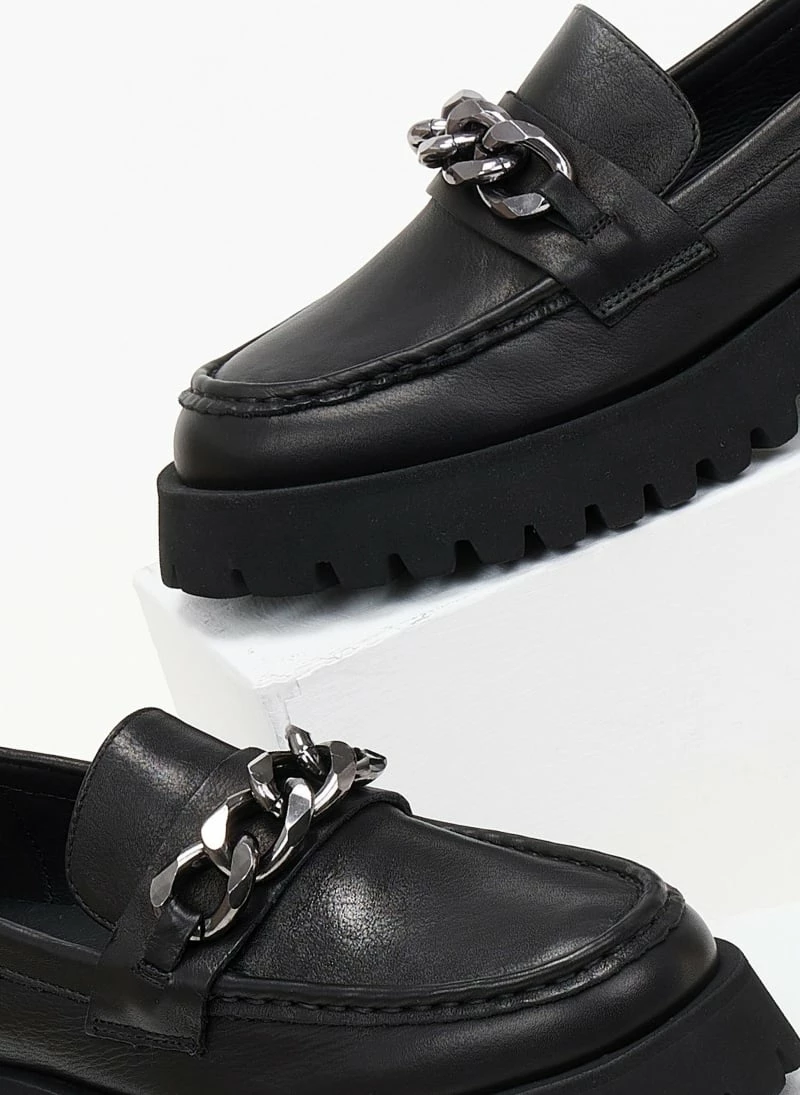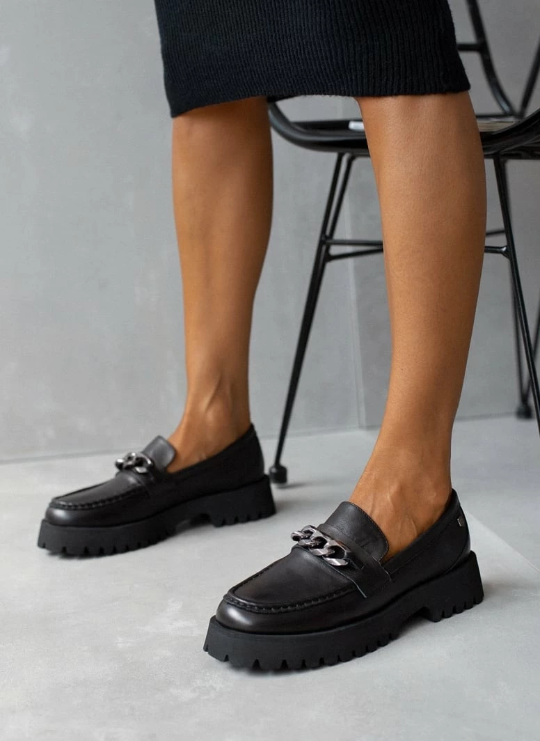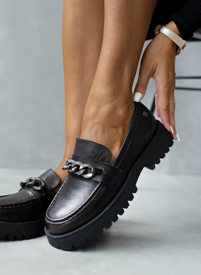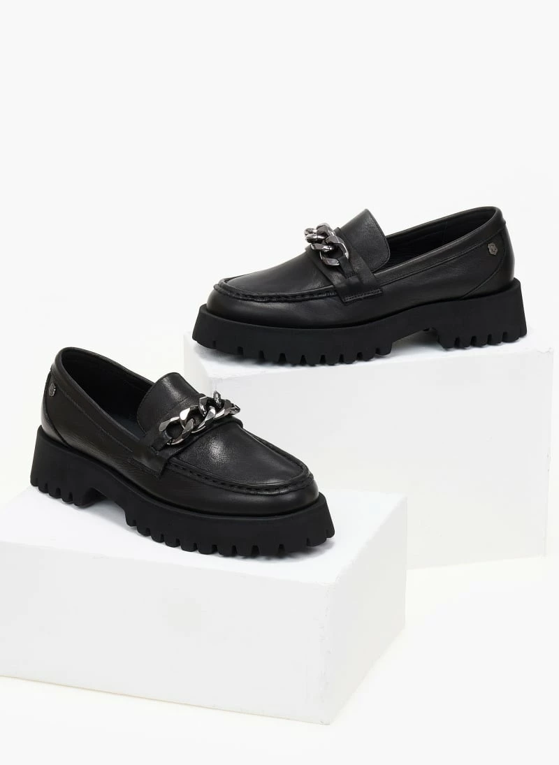 Εκπτωση 💯 Loafers δερμάτινα με αλυσίδα CARMELA 160358 – Μαύρο 🤩