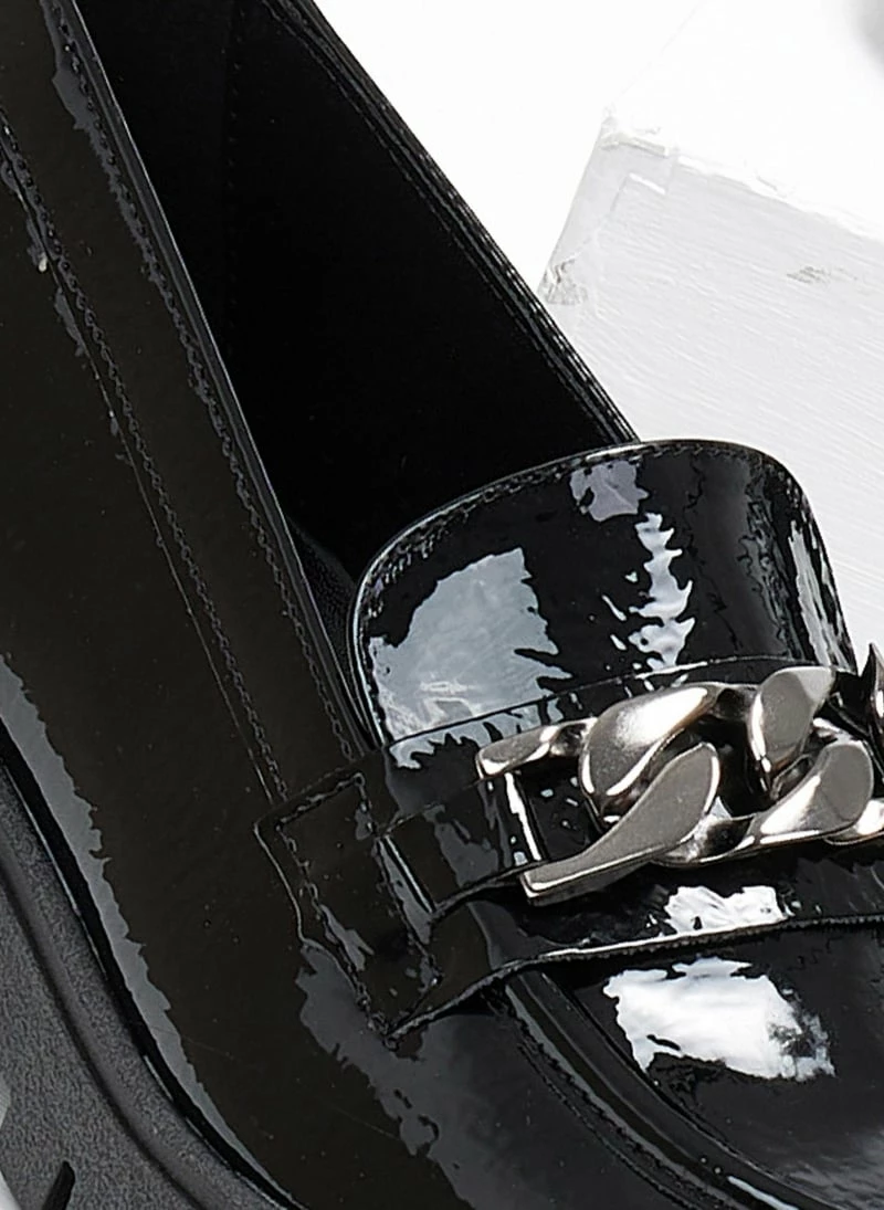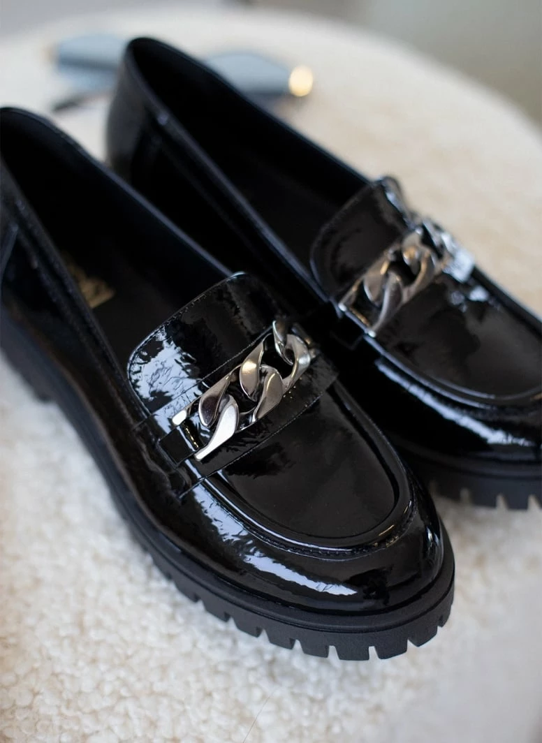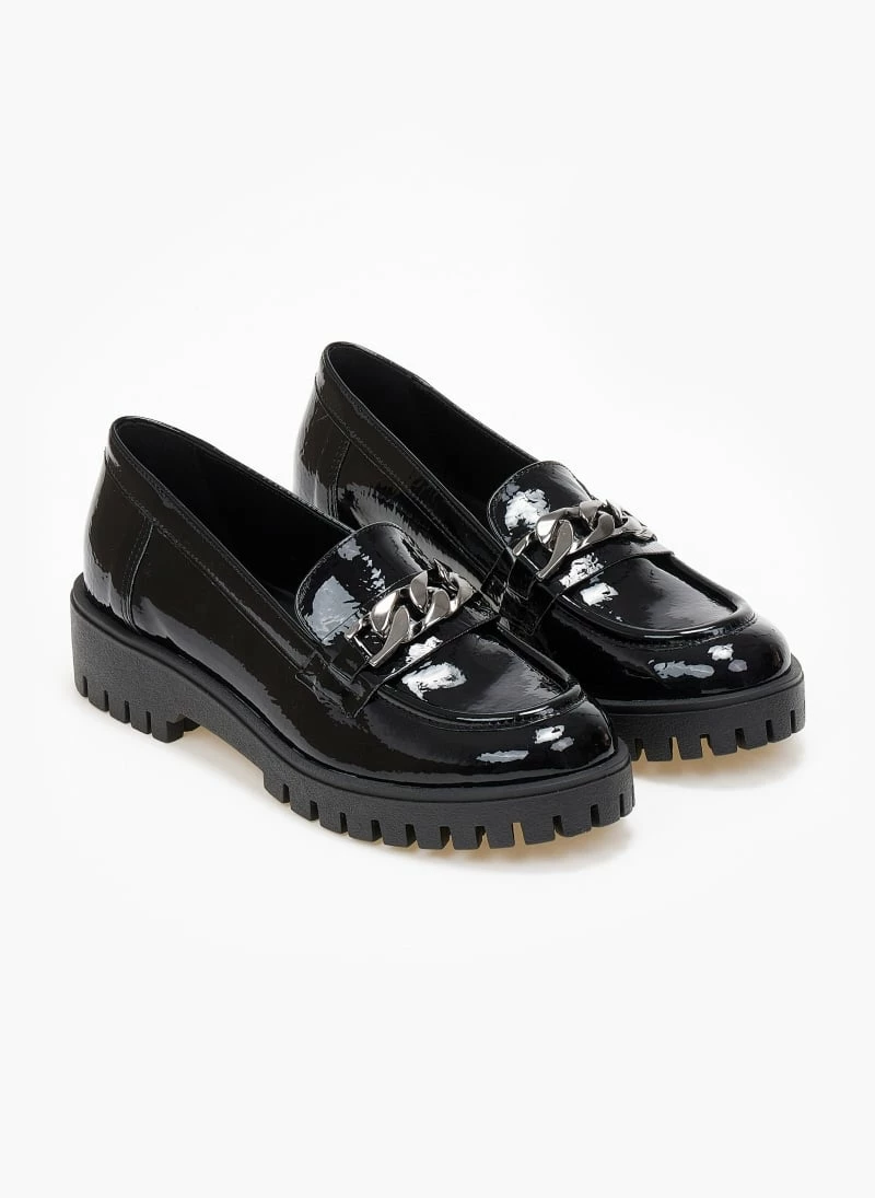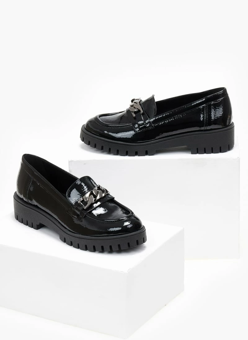 Συμφωνίες ⌛ Loafers λουστρίνι με αλυσίδα Estil – Μαύρο 👏