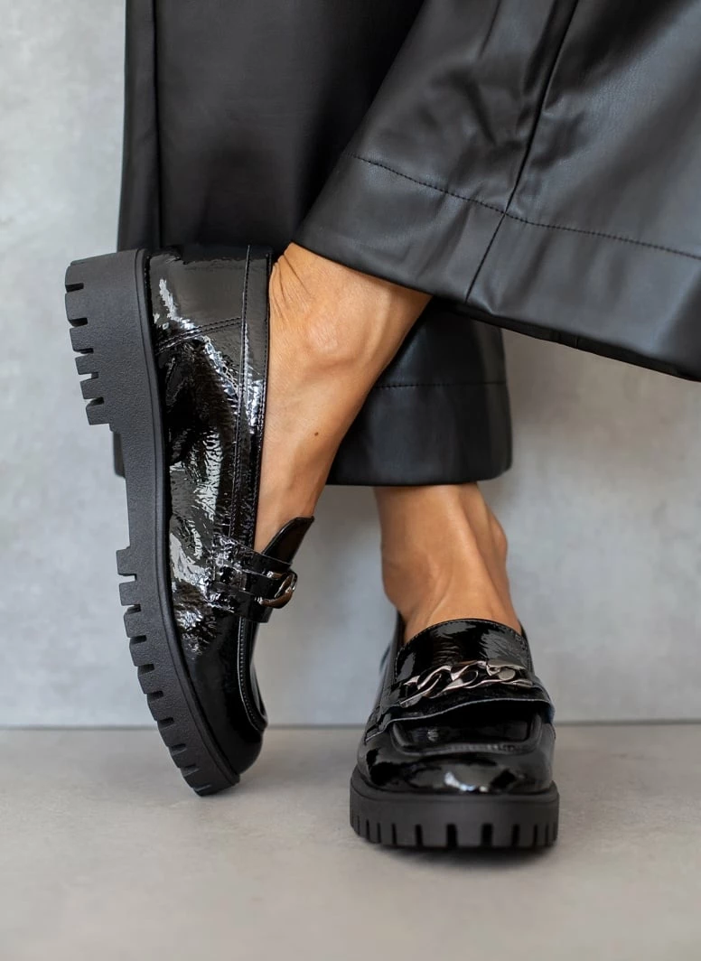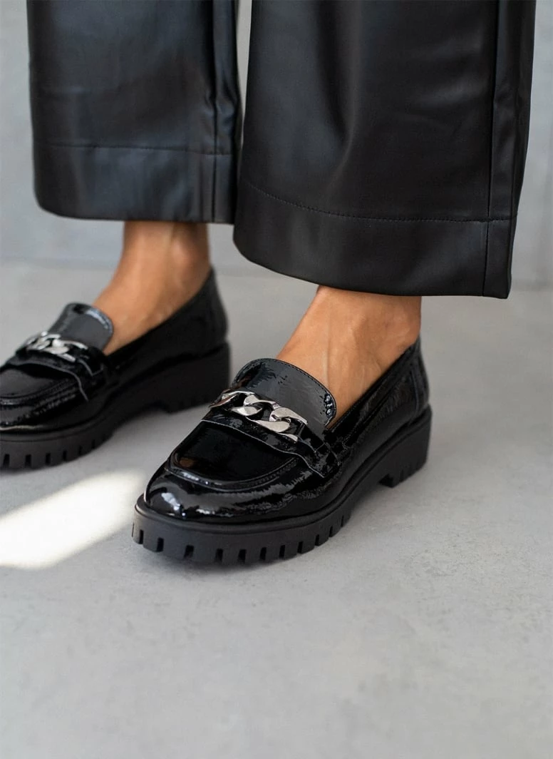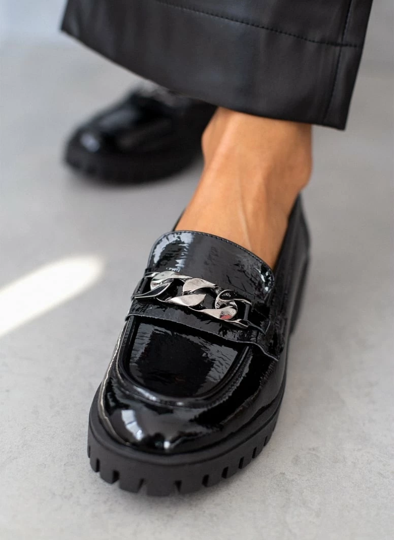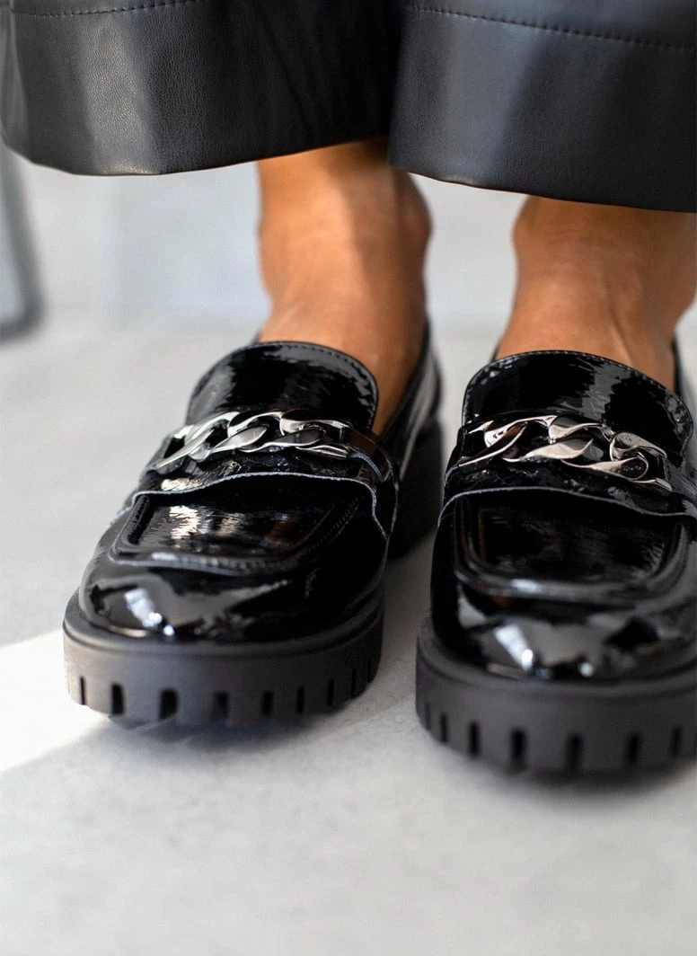 Συμφωνίες ⌛ Loafers λουστρίνι με αλυσίδα Estil – Μαύρο 👏