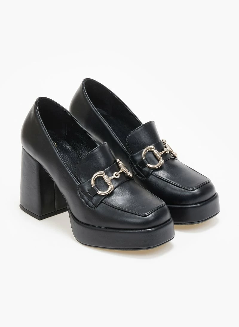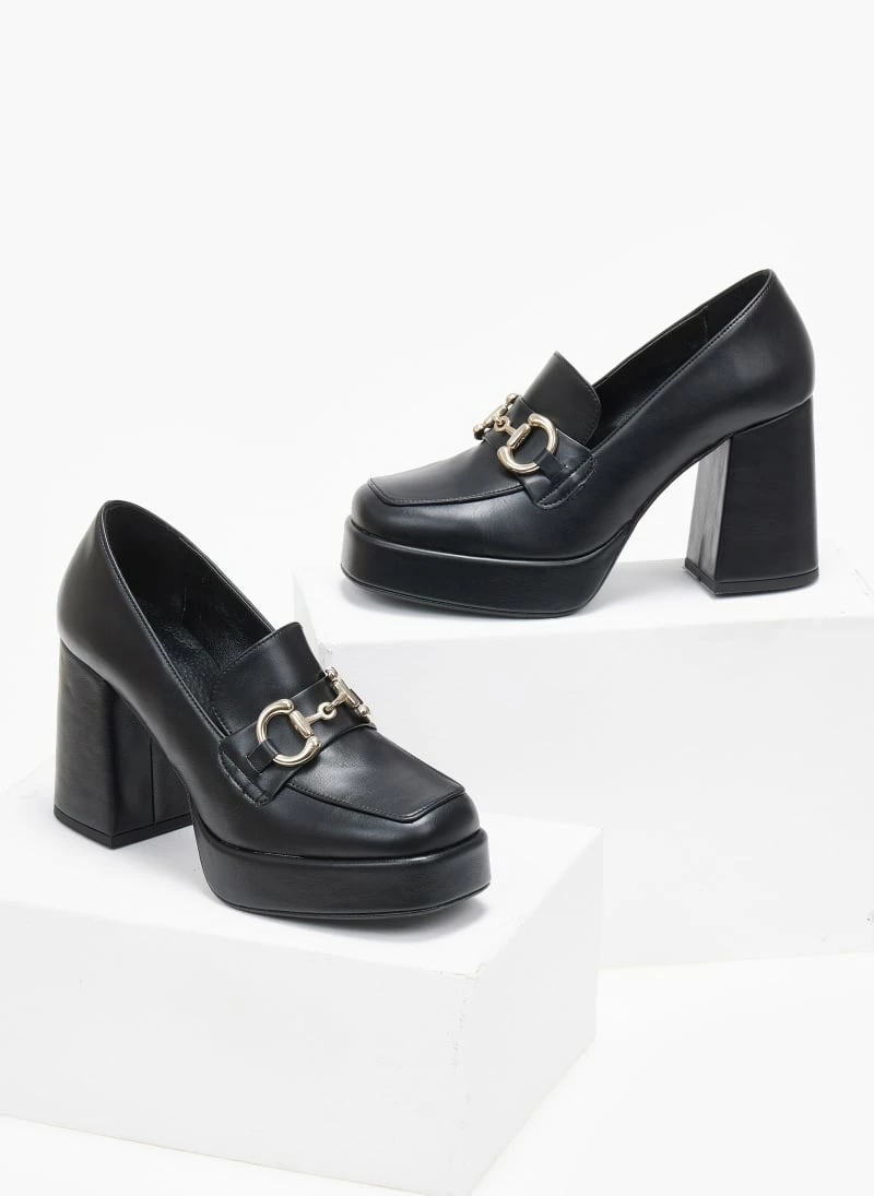 Loafers tfp ματ με χοντρό τακούνι .Έχουν καρε γραμμή. Μεταλλικό διακοσμητικό στο κουτεπιέ. Δερμάτινος πάτος. Ελληνικής κατασκευής.