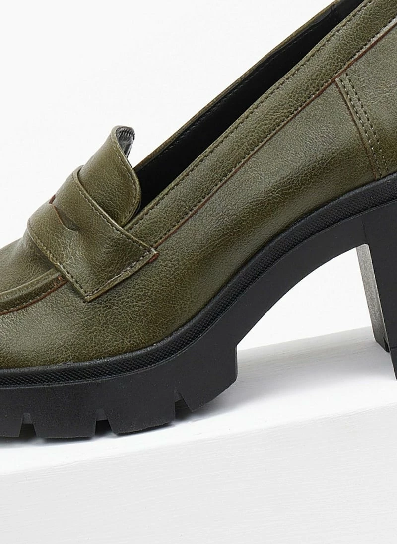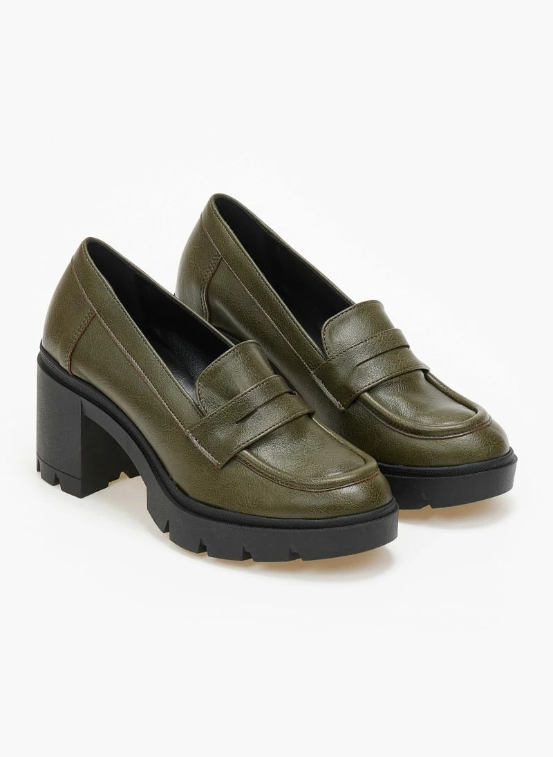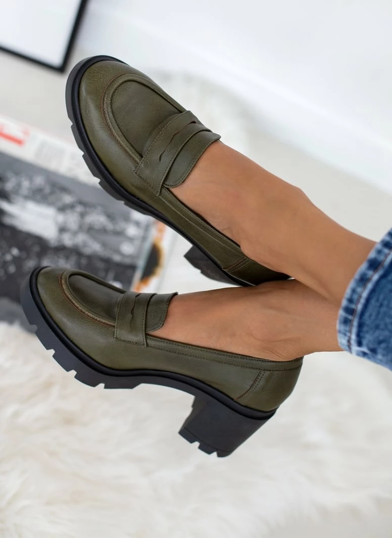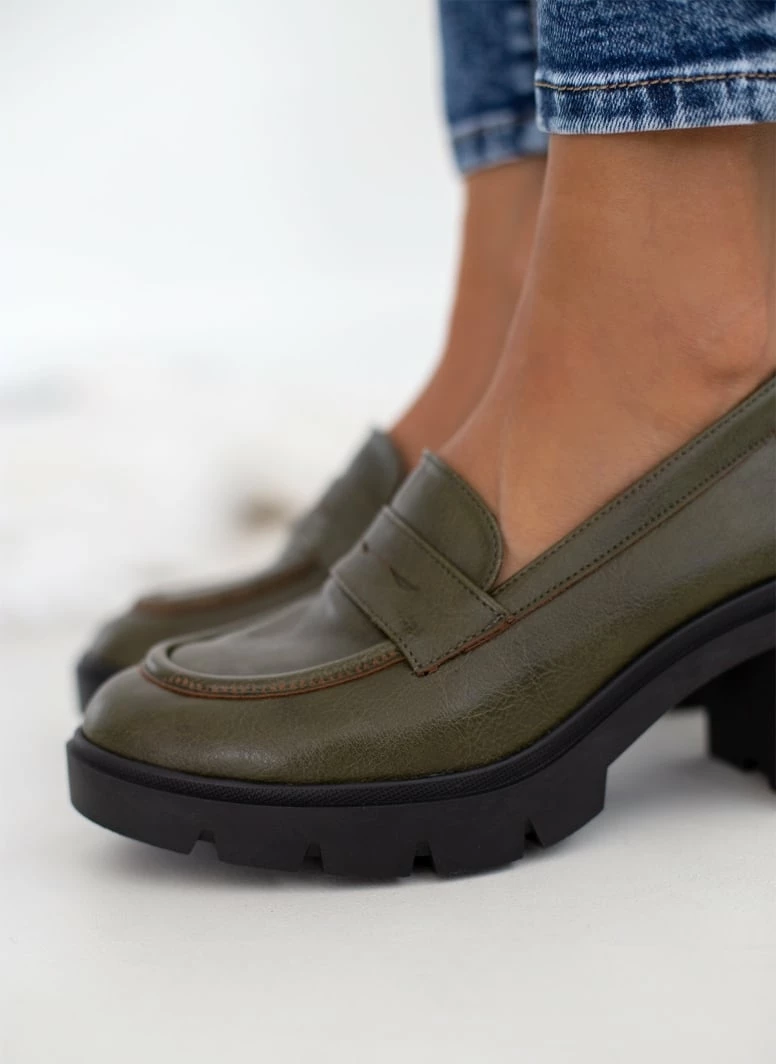 Εκπτωση ❤️ Loafers με τακούνι Estil – Λαδί 😀