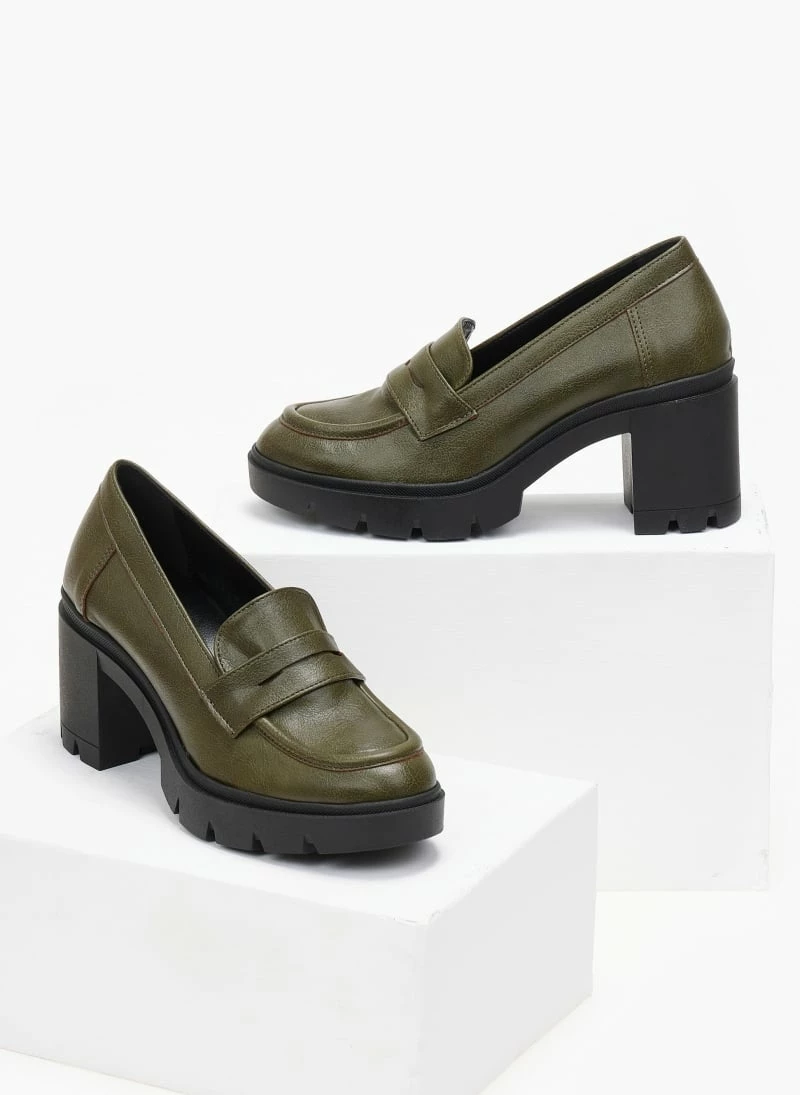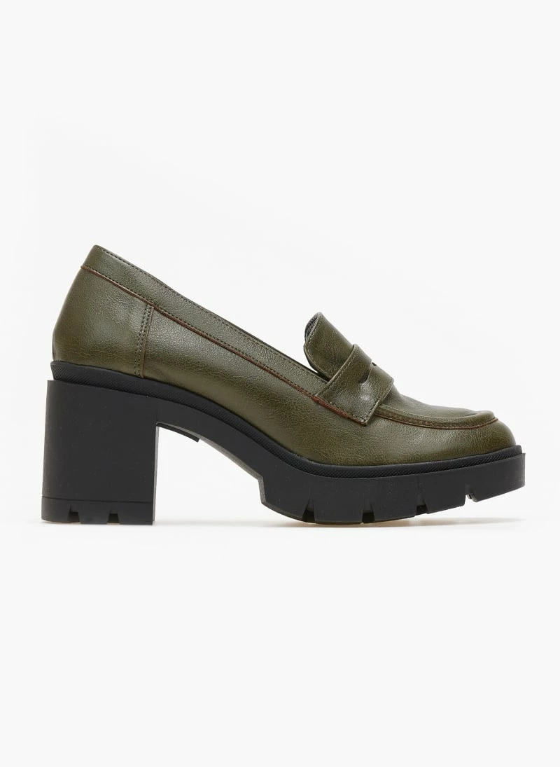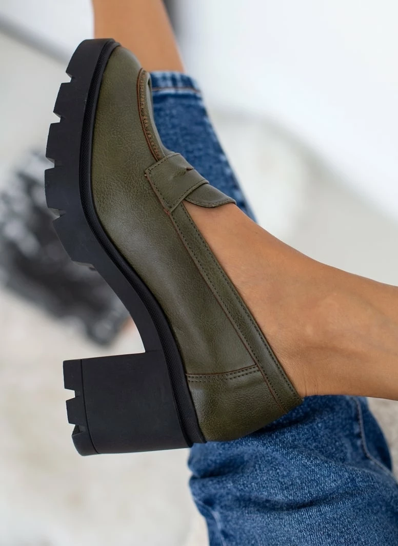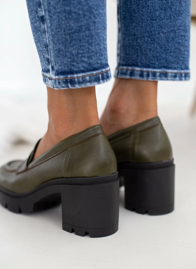 Εκπτωση ❤️ Loafers με τακούνι Estil – Λαδί 😀
