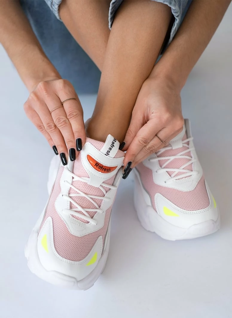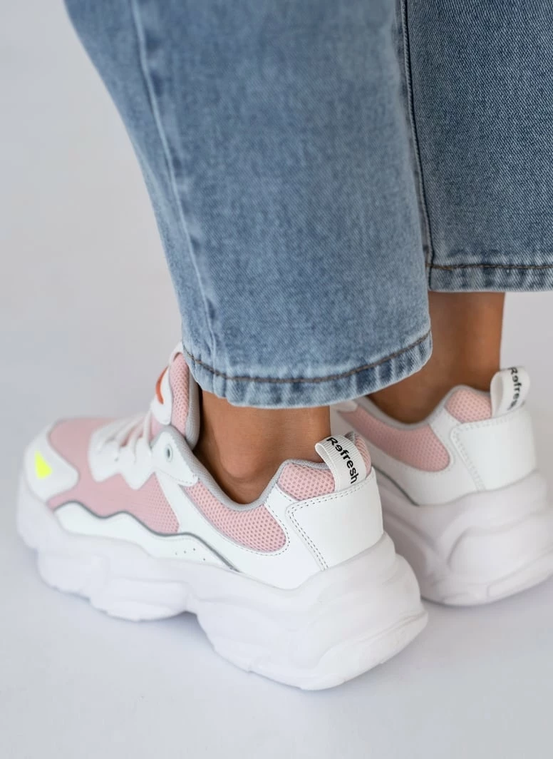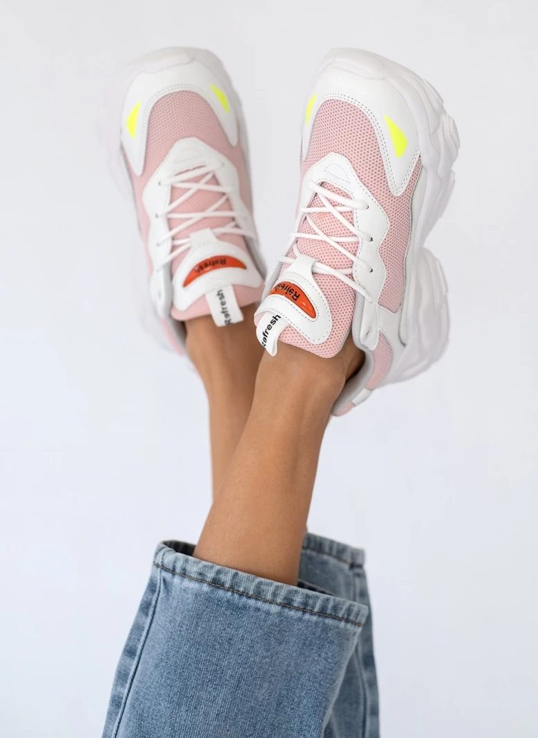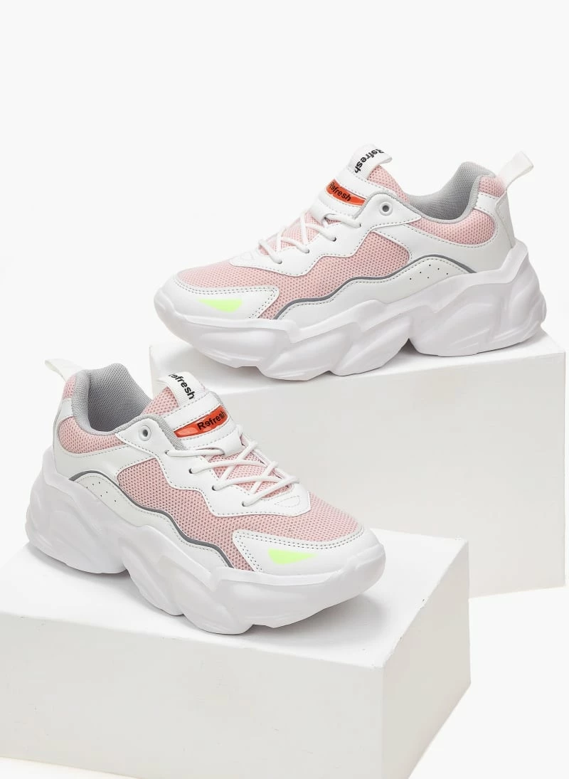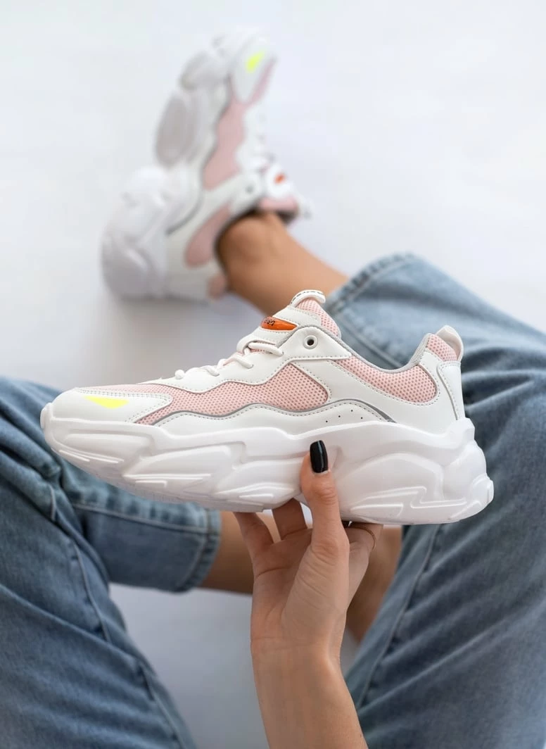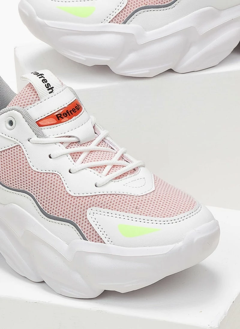 Ελαφριά sneakers με ύφασμα και chunky σόλα. Έχουν διακριτική φλούο λεπτομέρεια στη μπροστινή πλευρά. Vegan approved.