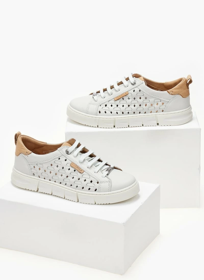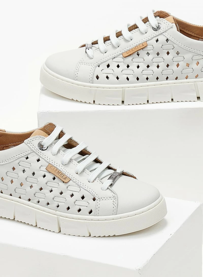 Καλύτερη πώληση 👏 Sneakers δερμάτινα με διάτρητο σχέδιο CARMELA 68568 – Λευκό ⭐