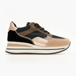 Νέος 🥰 The Fashion Project 👟 Sneaker Flatforms με ψηλή σόλα σε συνδυασμούς υλικών – Μαύρο 👏