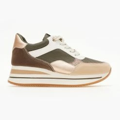 Φτηνός 😀 The Fashion Project 👟 Sneaker Flatforms με ψηλή σόλα σε συνδυασμούς υλικών – Λαδί ❤️