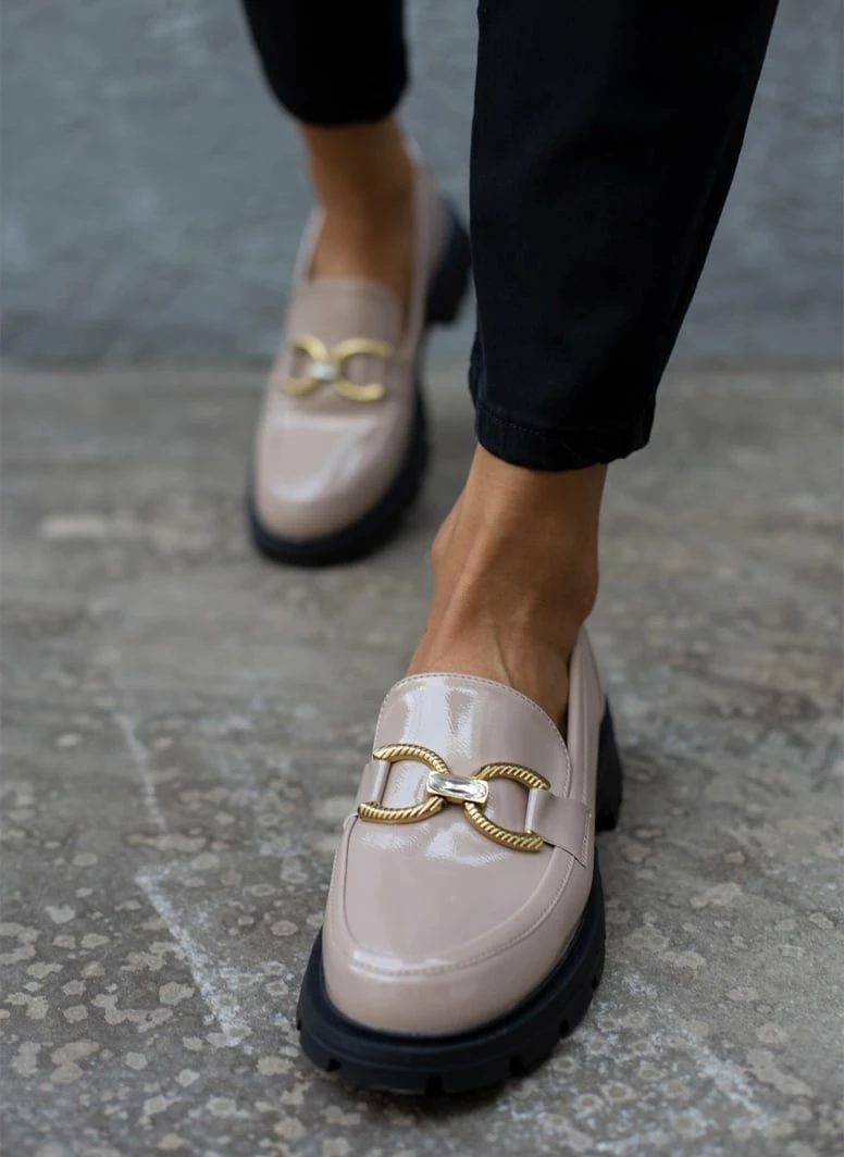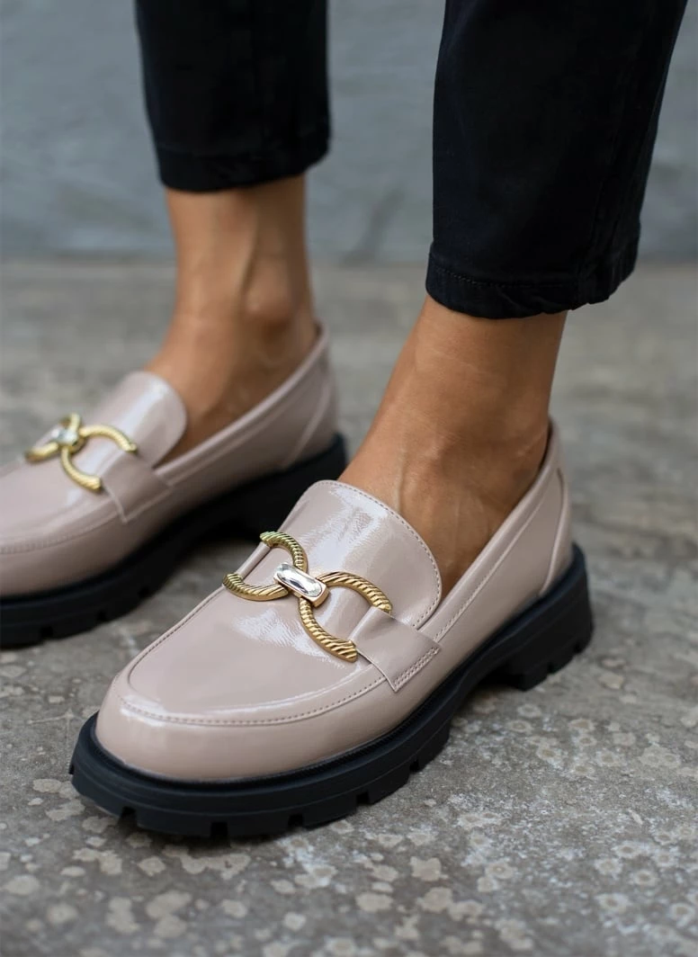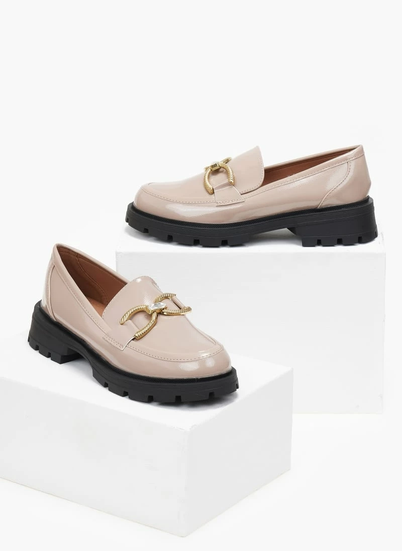 Προώθηση ⭐ The Fashion Project Loafers Chunky λουστρίνι με Strass – Τάουπε 🥰
