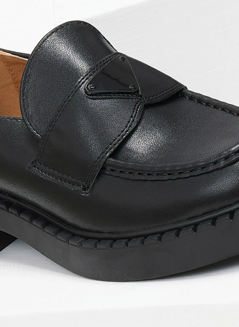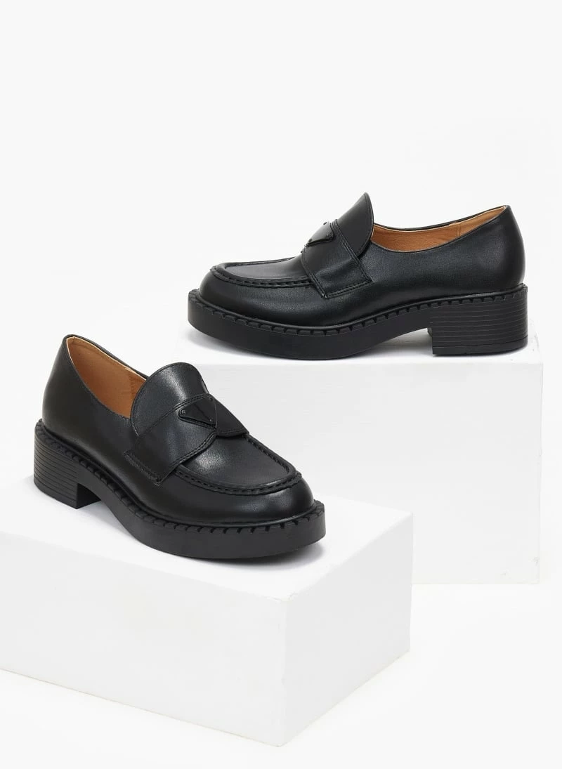 Loafers chunky με ψηλή σόλα. Έχουν εξωτερική ραφή στο επάνω μέρος. Μεταλλικό διακοσμητικό στο ίδιο χρώμα.