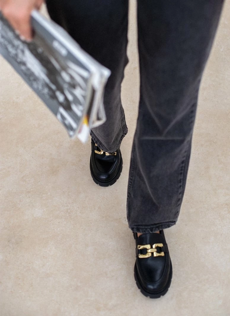 Chunky loafers με τρακτερωτή σόλα. Έχουν μεταλλική αγκράφα στο επάνω μέρος.