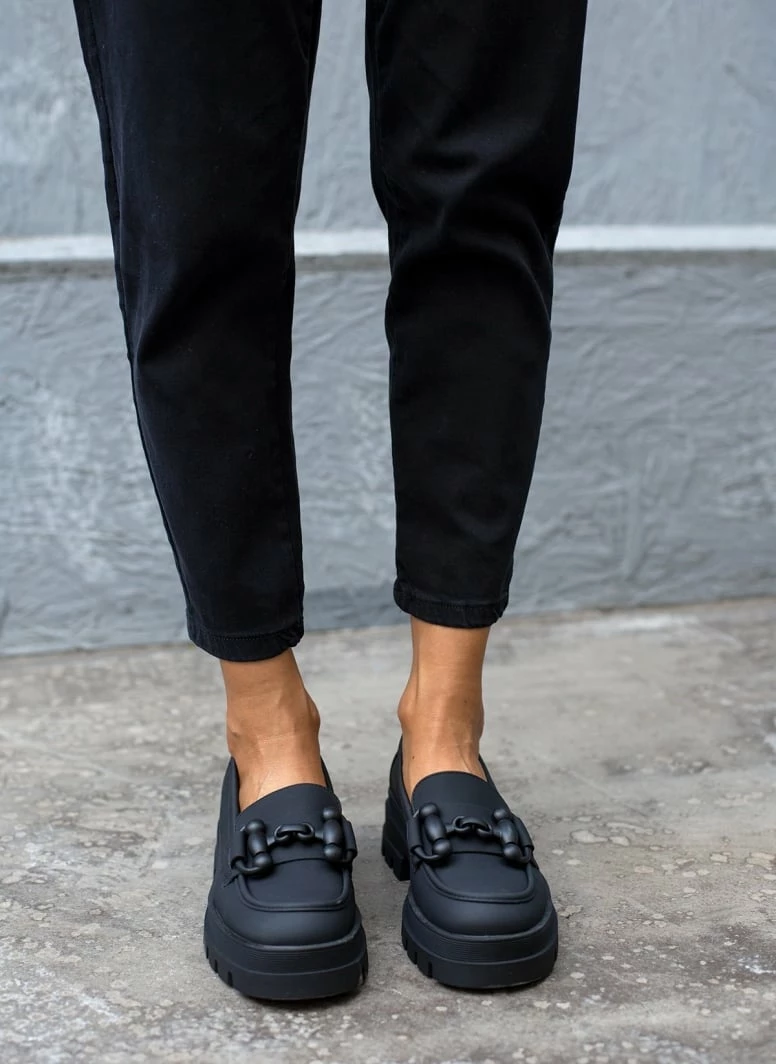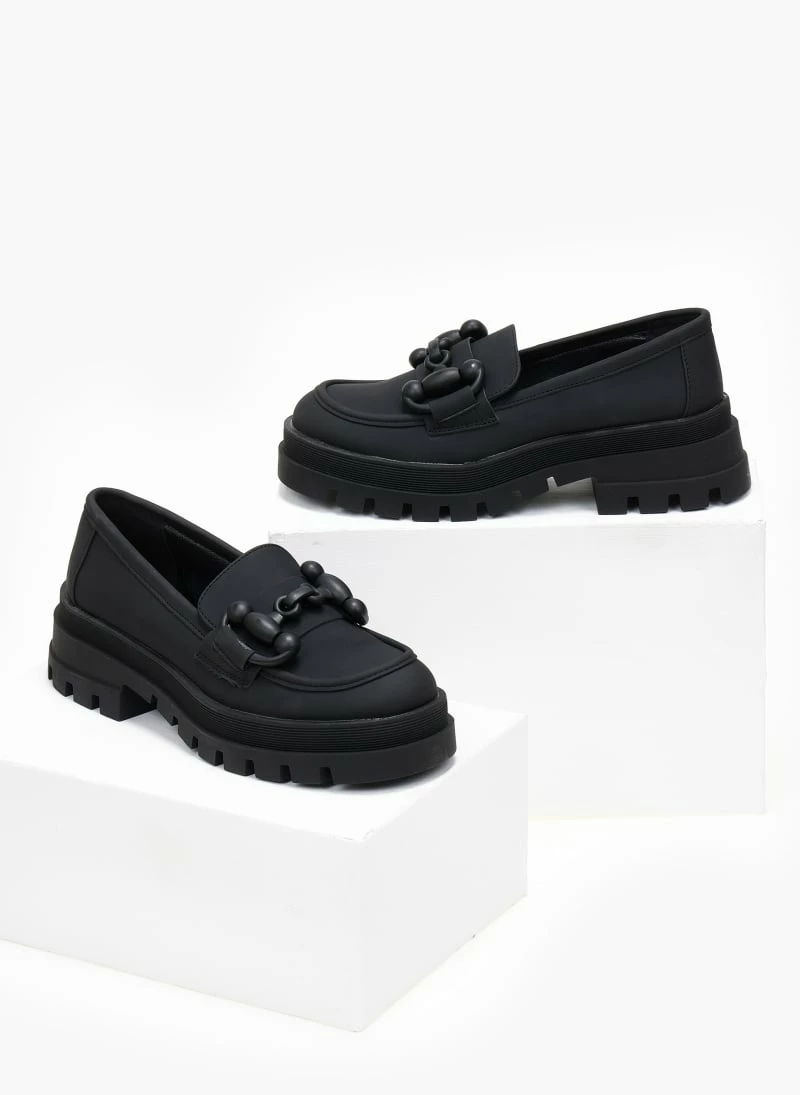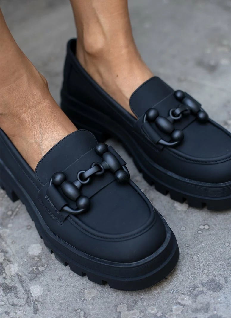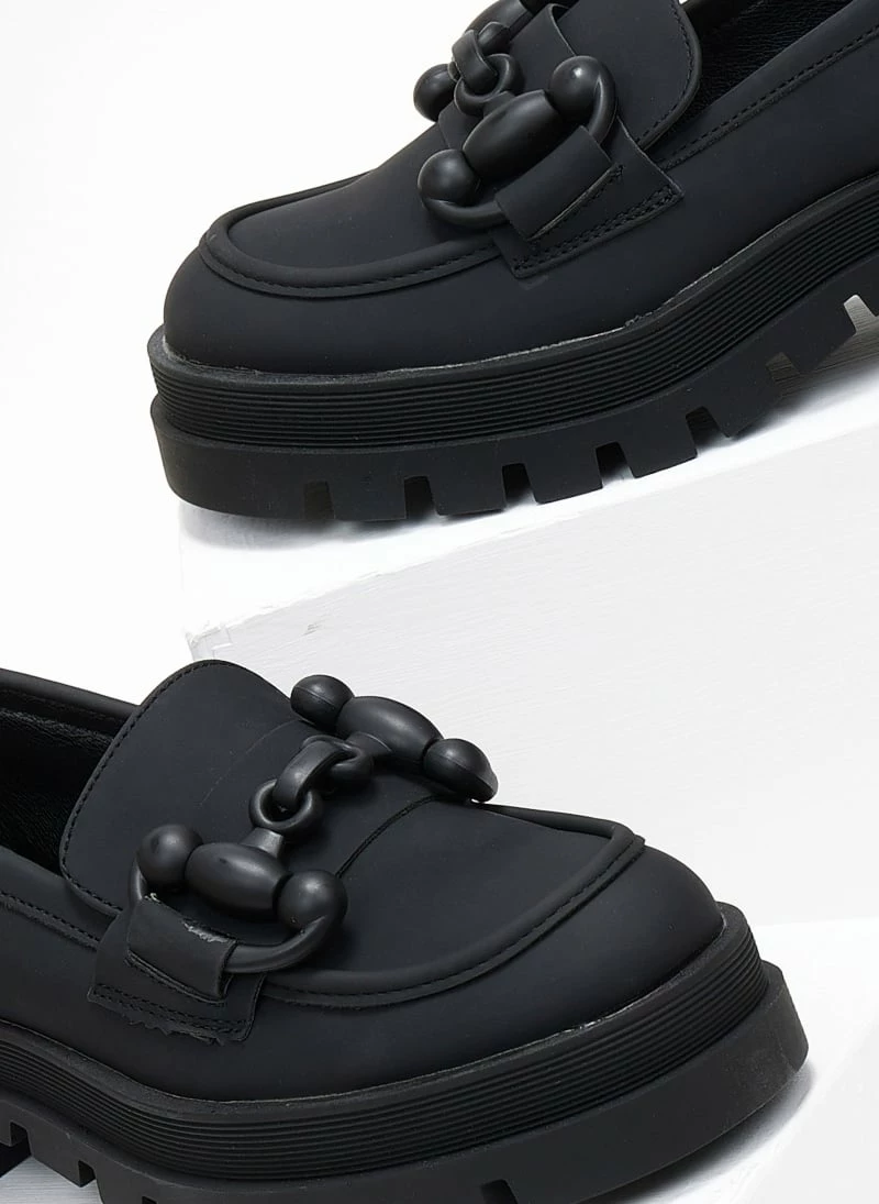 Loafers chunky σε ματ χρώματα. Έχουν μεταλλικό διακοσμητικό στο ίδιο χρώμα. Ψηλή τρακτερωτή σόλα.