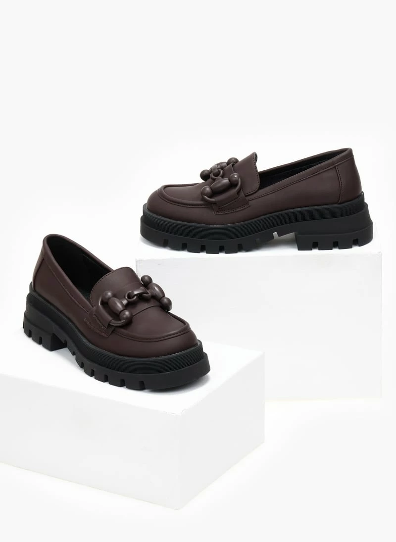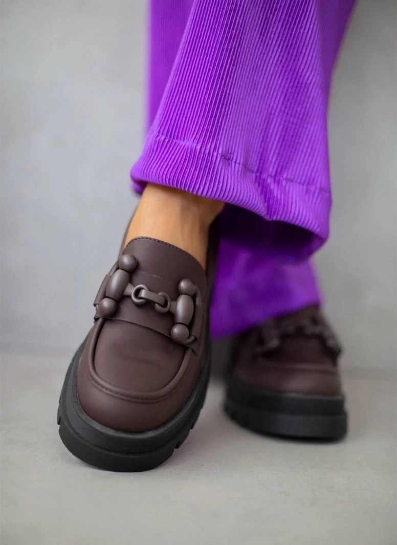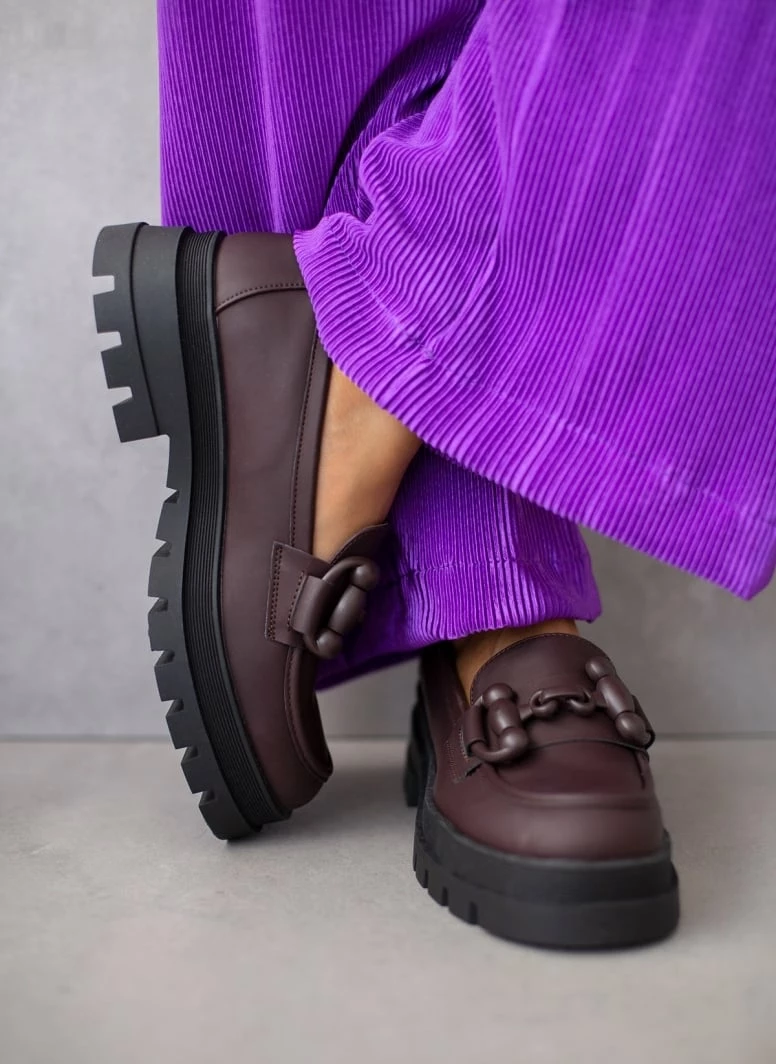 Loafers chunky σε ματ χρώματα. Έχουν μεταλλικό διακοσμητικό στο ίδιο χρώμα. Ψηλή τρακτερωτή σόλα.