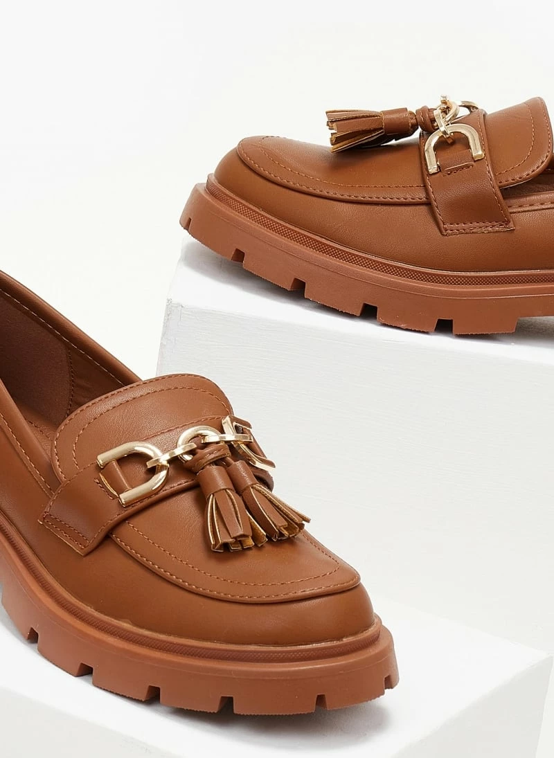 Φτηνός 😍 The Fashion Project Loafers με μεταλλική αλυσίδα και κρόσια – Ταμπά ❤️