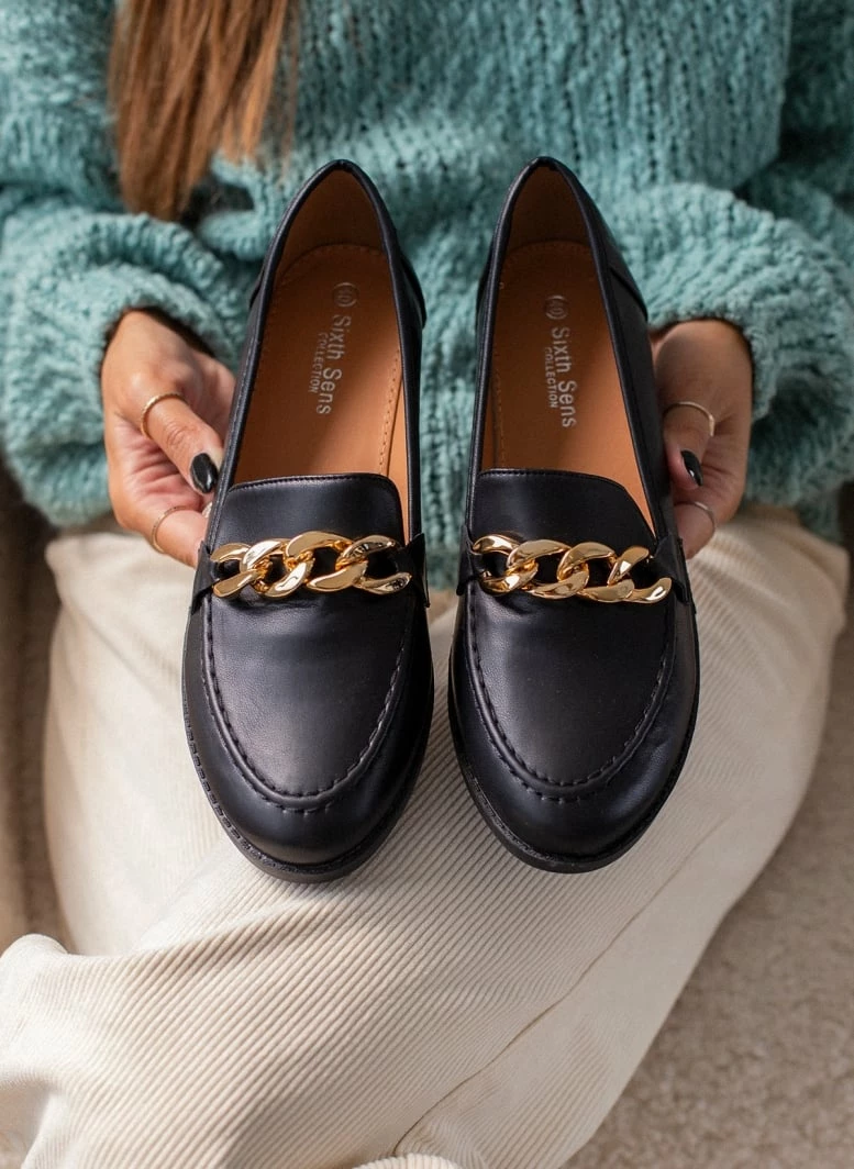 Καλύτερη πώληση ⌛ The Fashion Project Loafers με ραφή και αλυσίδα – Μαύρο 🔥
