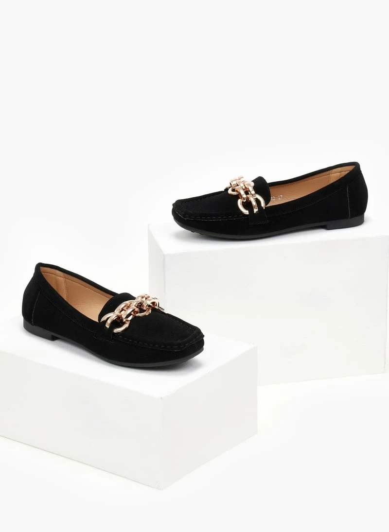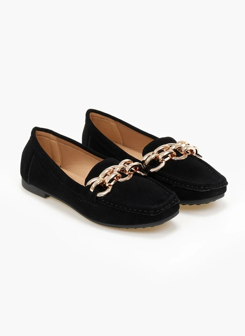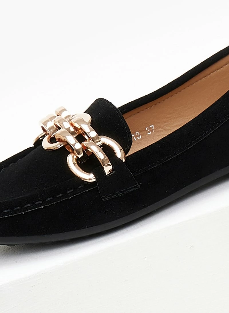 Πολύ καλή προσφορά 🔔 The Fashion Project Loafers Suede με μεταλλικό σχέδιο – Μαύρο 😍