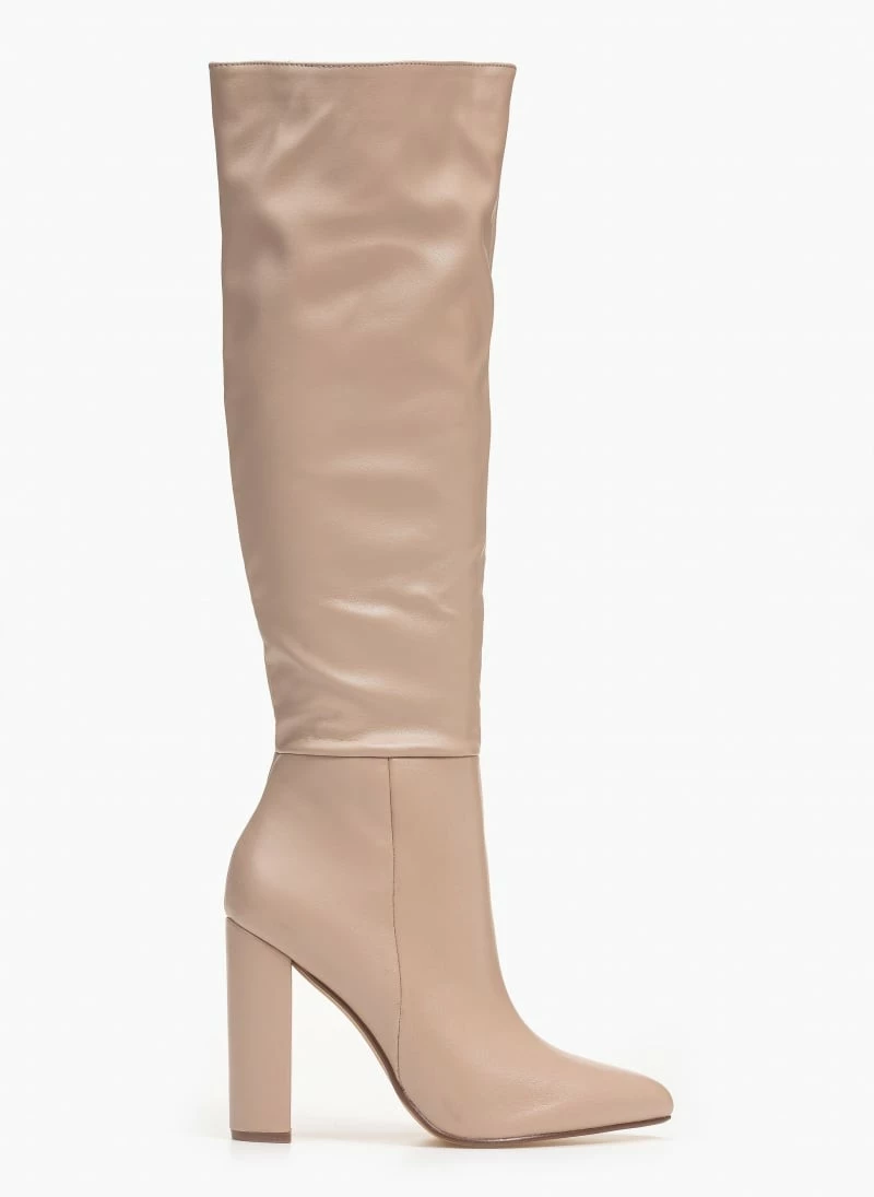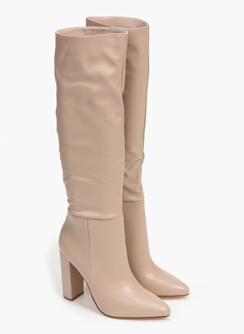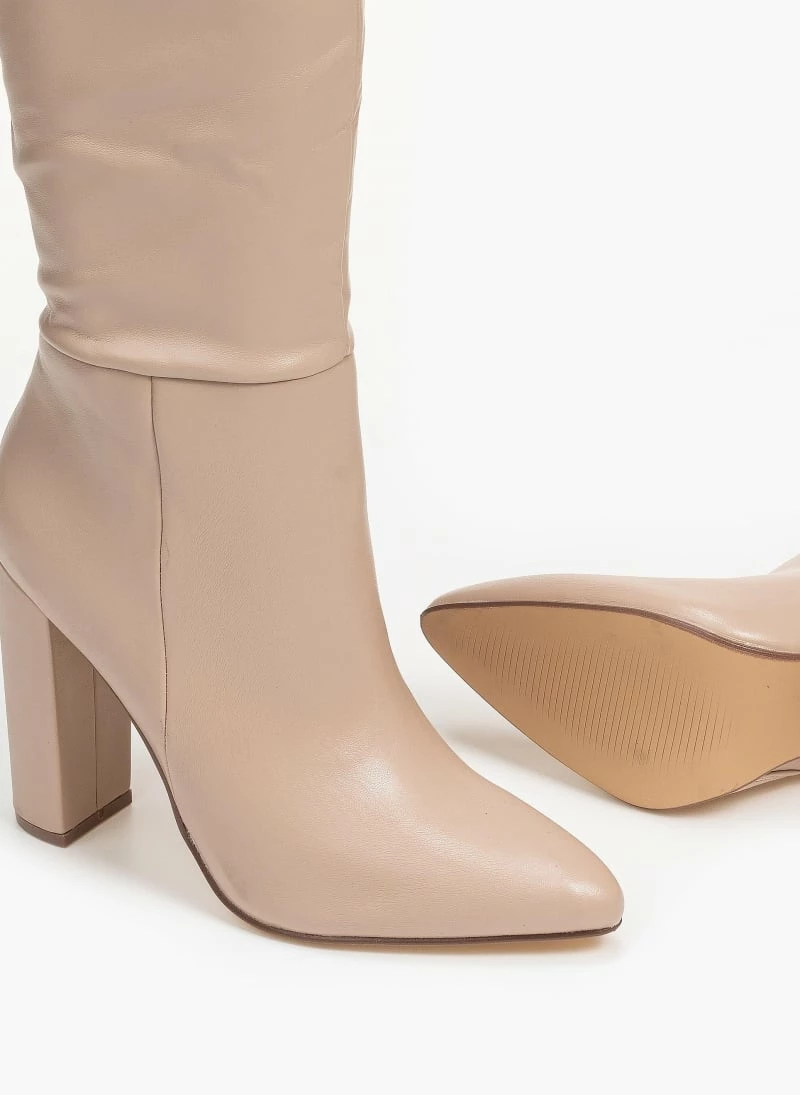 Τοπ 10 ❤️ The Fashion Project Μυτερές Block Heel μπότες – Nude 😉