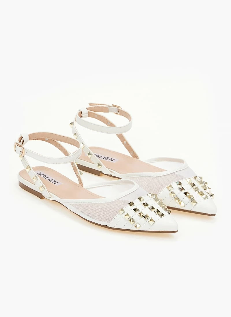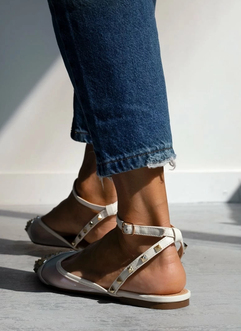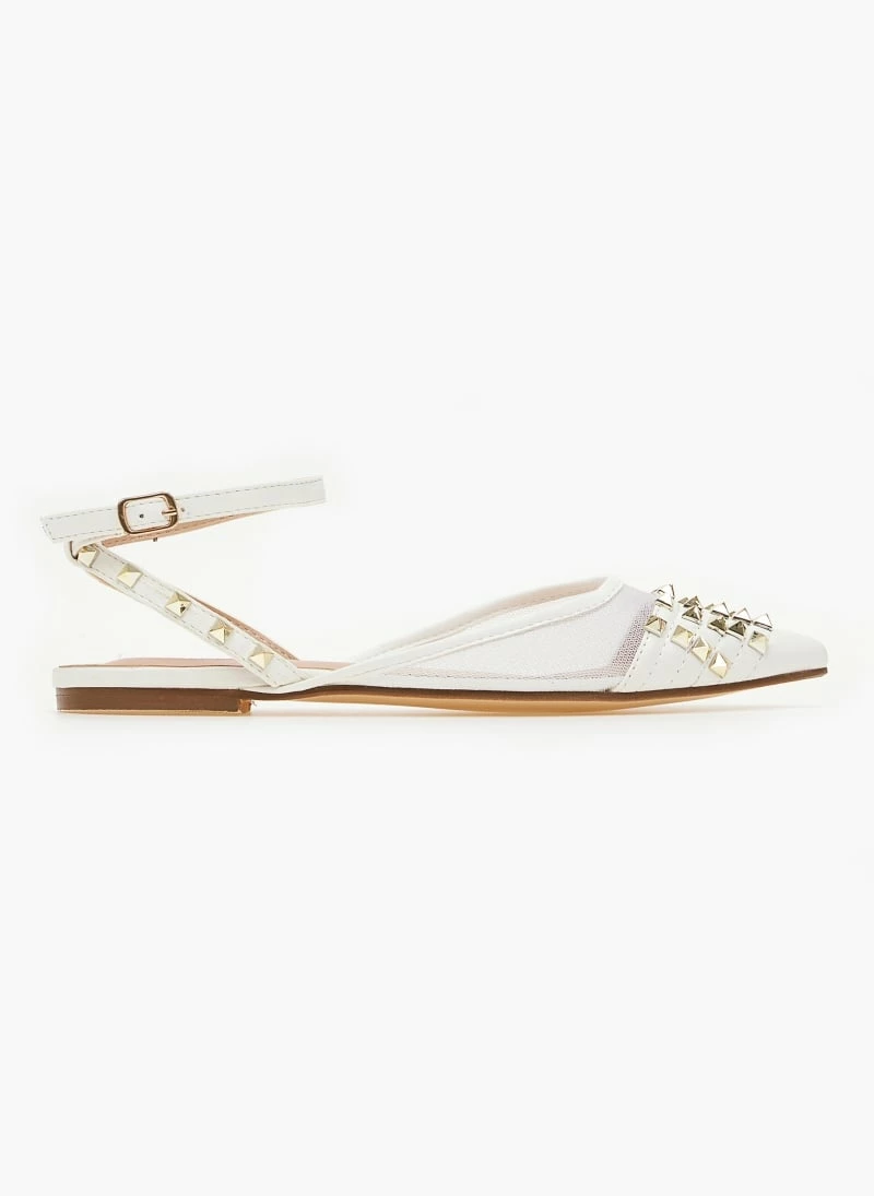 Εκπτωση 🌟 The Fashion Project Μπαλαρίνες ίσιες με διαφάνεια και τρουκς – Λευκό ✔️