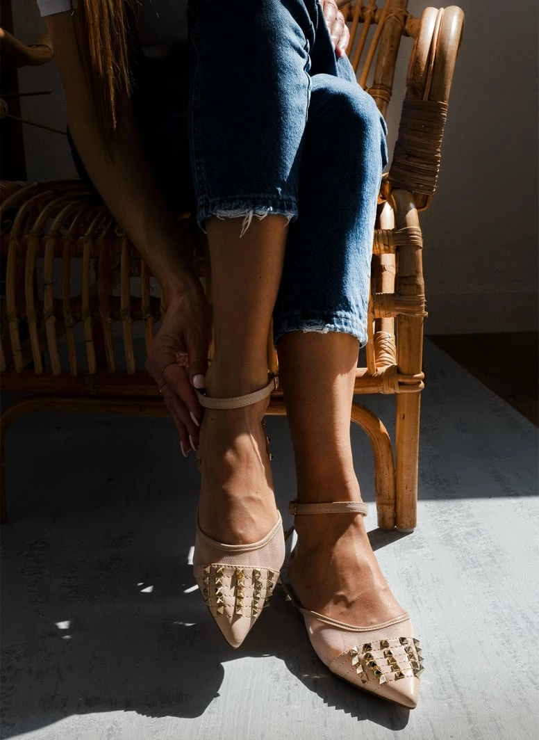 Τοπ 10 😉 The Fashion Project Μπαλαρίνες ίσιες με διαφάνεια και τρουκς – Μπεζ 🤩