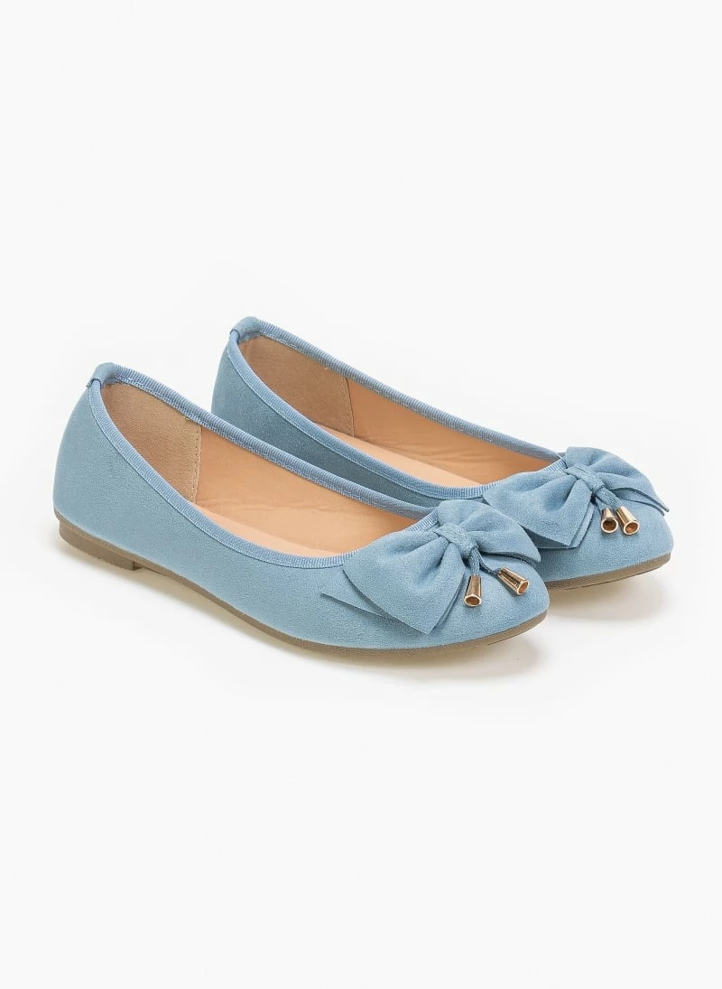 Basic μπαλαρίνες σε στρογγυλή γραμμή με διπλό φιόγκο και μεταλλική λεπτομέρεια.Έχουν μαλακή σόλα από λάστιχο.