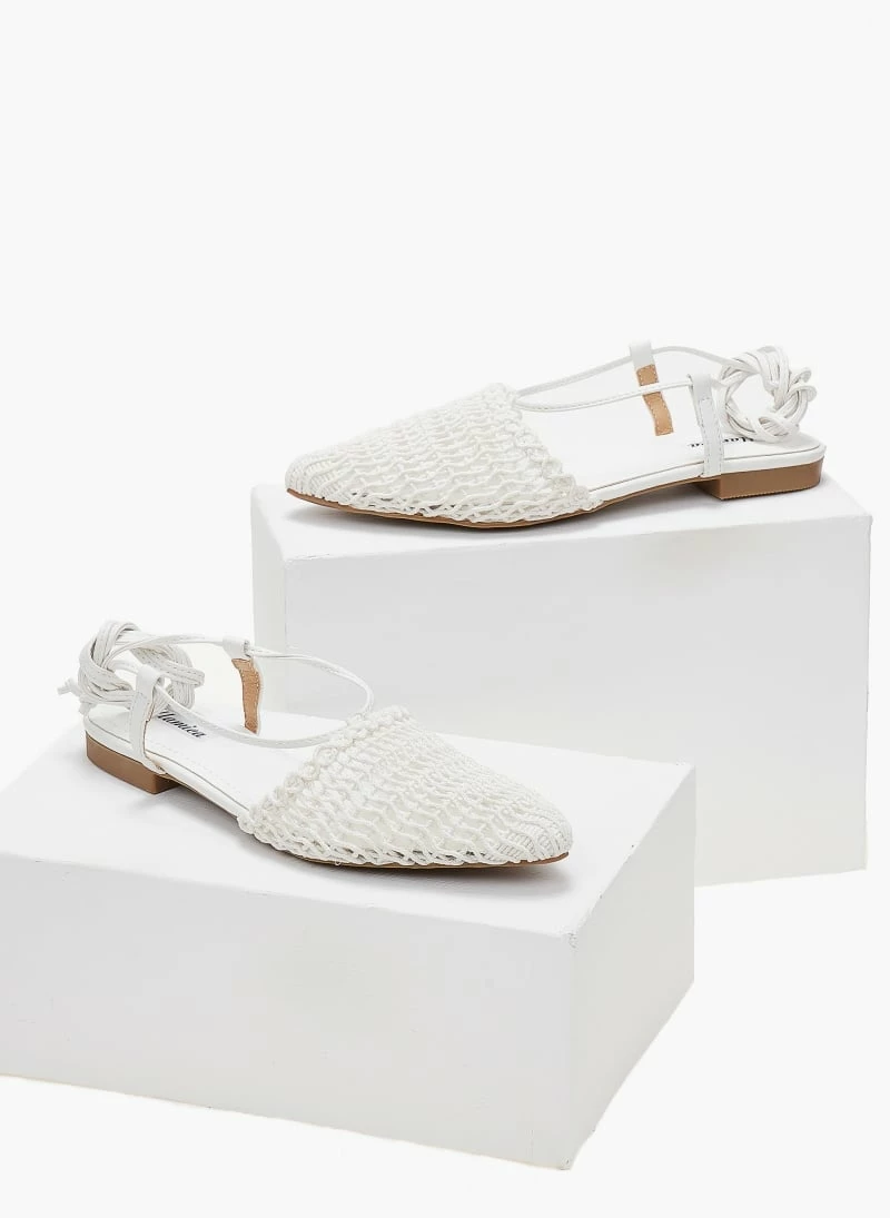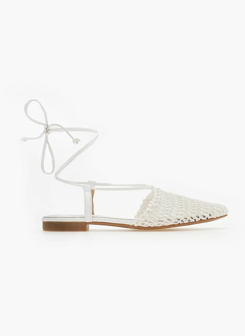Καλύτερη πώληση 🛒 The Fashion Project Μπαλαρίνες με πλεκτό σχέδιο και κορδόνια – Λευκό 🎉
