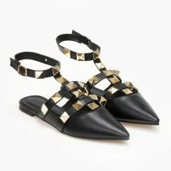 Μπαλαρίνες μυτερές χωρίς τακούνι.Έχουν ματ μεταλλικό διακοσμητικό.Η σόλα είναι μαλακή από λάστιχο.