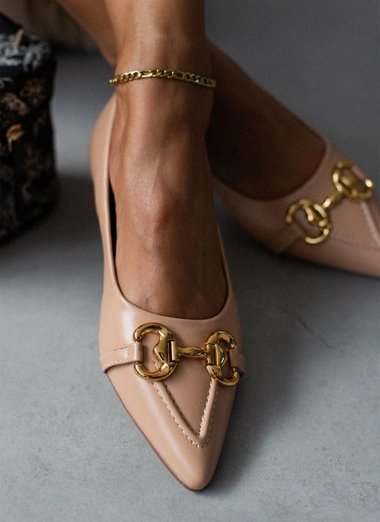 Νέος 💯 The Fashion Project Μπαλαρίνες μυτερές με ραφή – Nude ✔️
