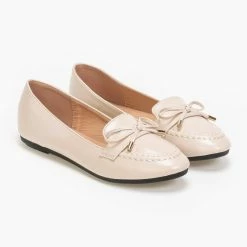 Μπαλαρίνες μυτερές με διακοσμητικό στο ίδιο χρώμα. Έχουν μαλακή σόλα από λάστιχο.