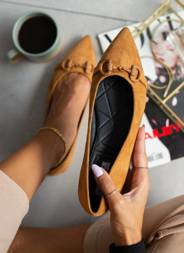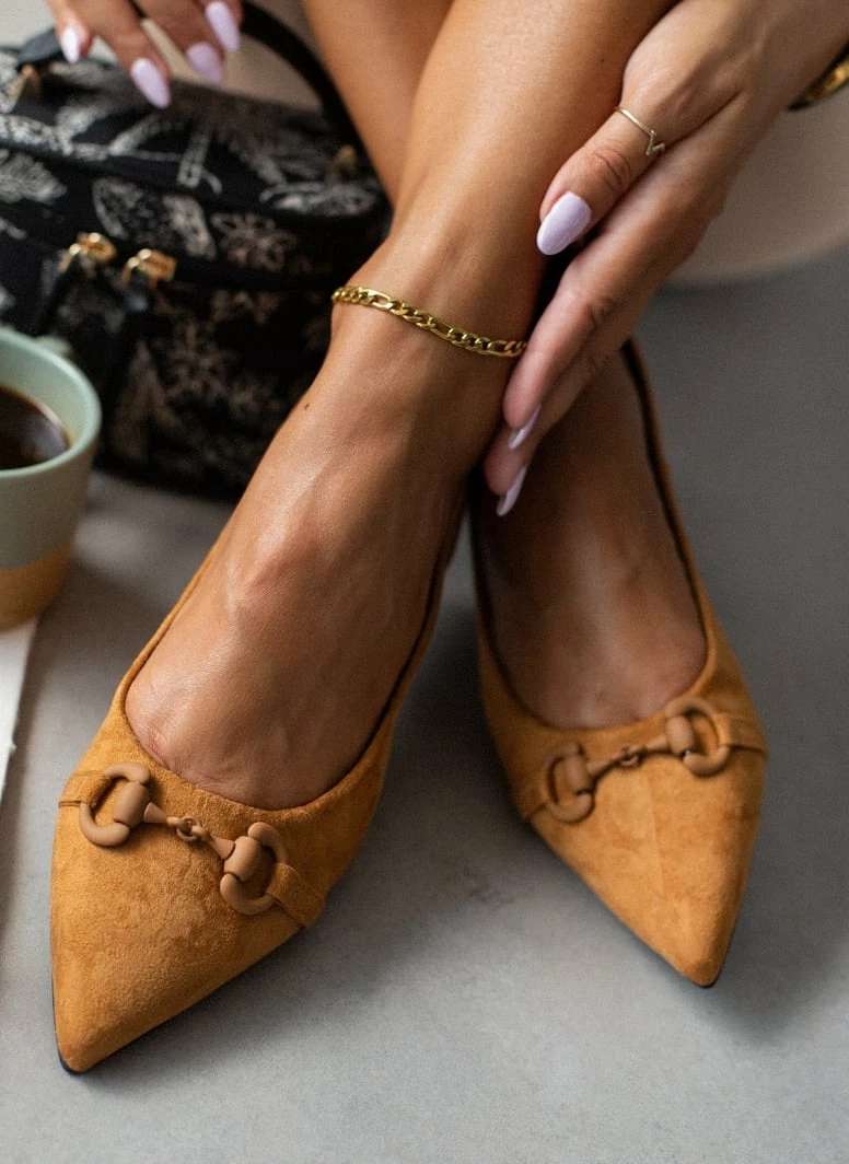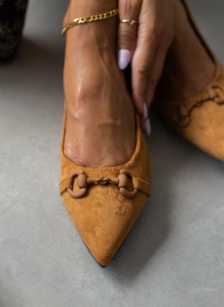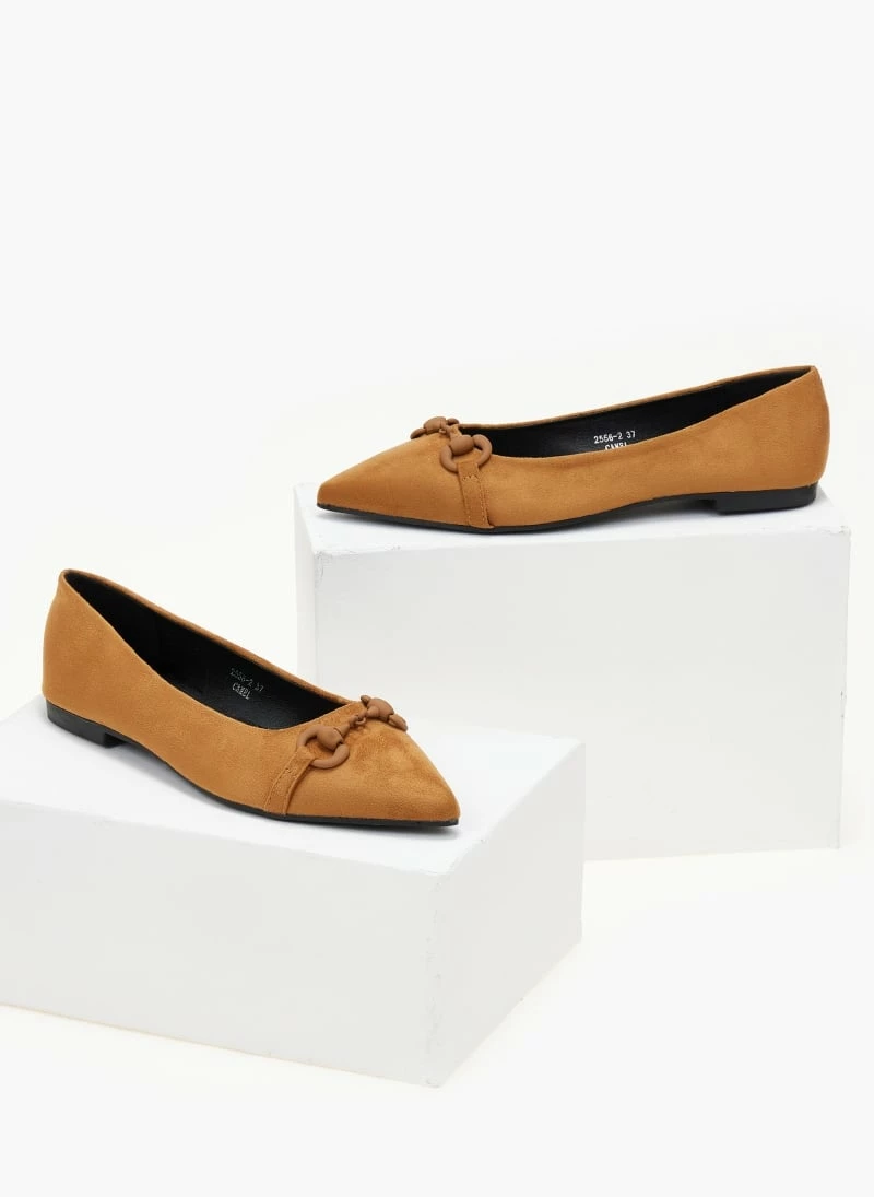 Best Pirce ⌛ The Fashion Project Μπαλαρίνες μυτερές με σχέδιο – Κάμελ ✨