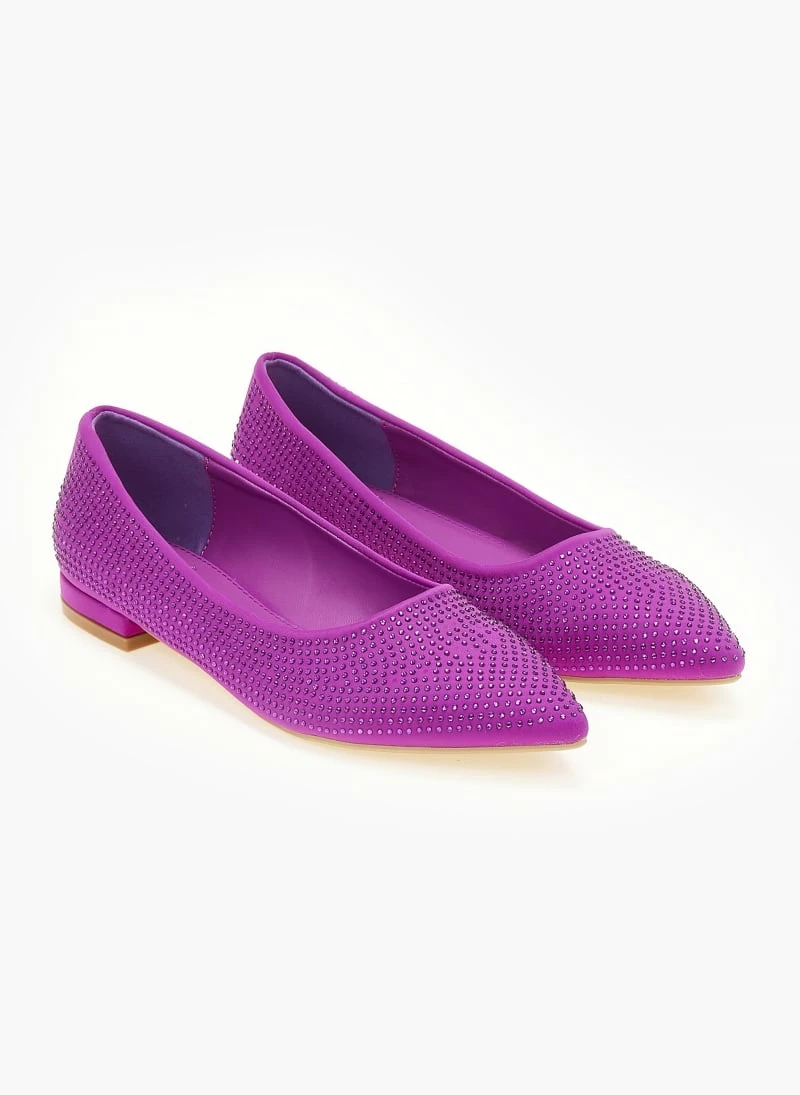 Flash Sale 🤩 The Fashion Project Μπαλαρίνες μυτερές με Strass – Μωβ 😀