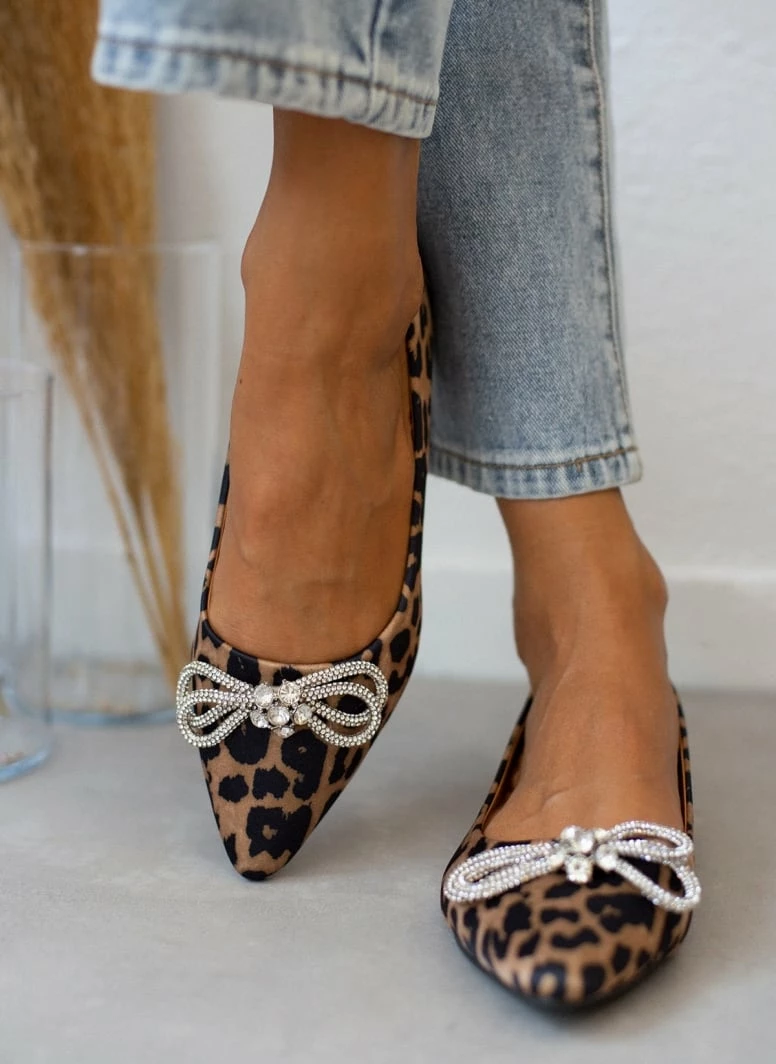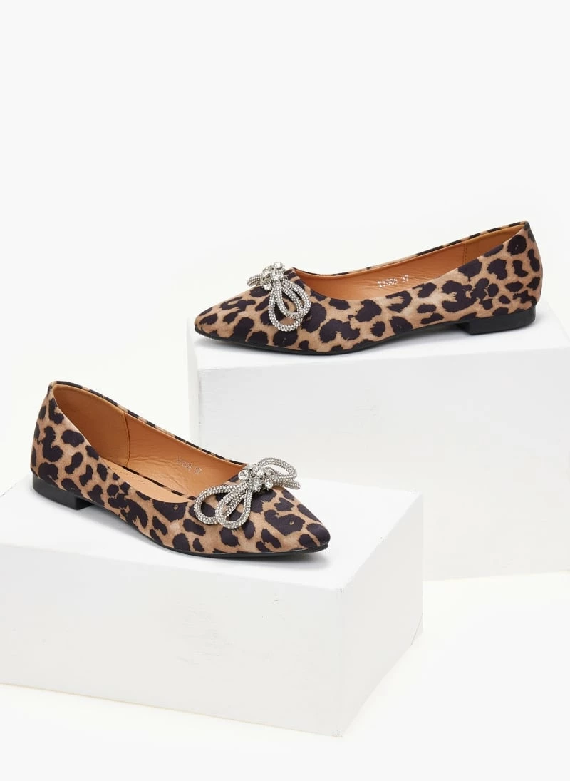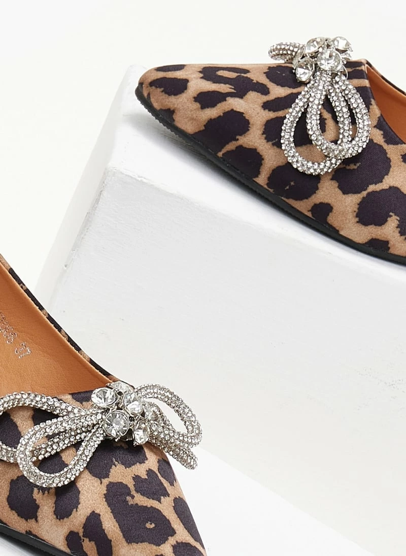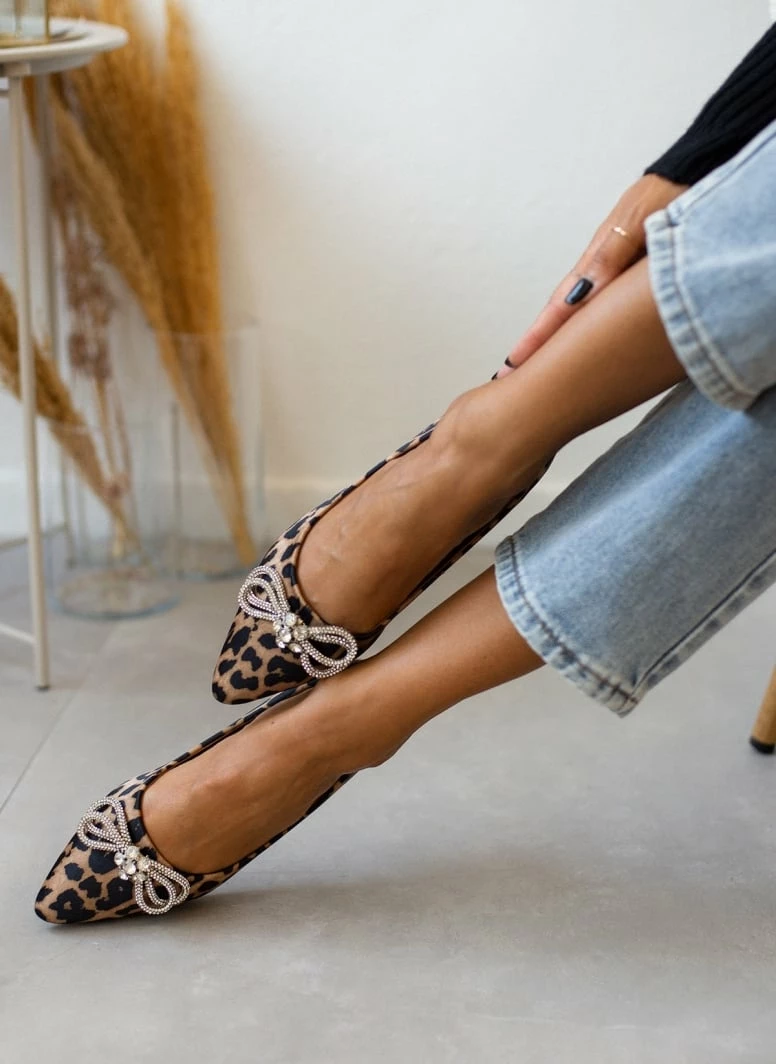 Προώθηση 🔔 The Fashion Project Μπαλαρίνες μυτερές σατέν χωρίς τακούνι – Leopard 🧨