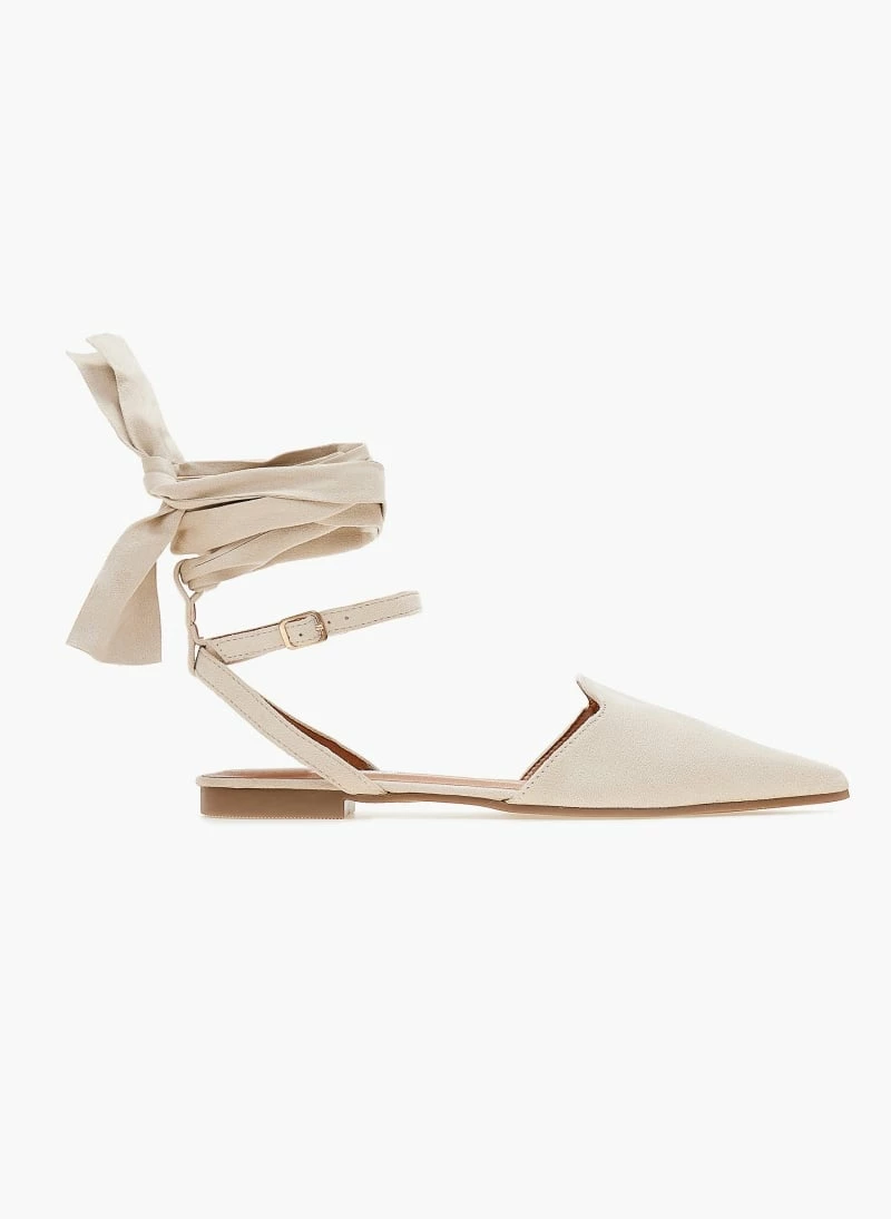 Τοπ 10 🤩 The Fashion Project Μπαλαρίνες Suede με Lace Up δέσιμο – Μπεζ 👏