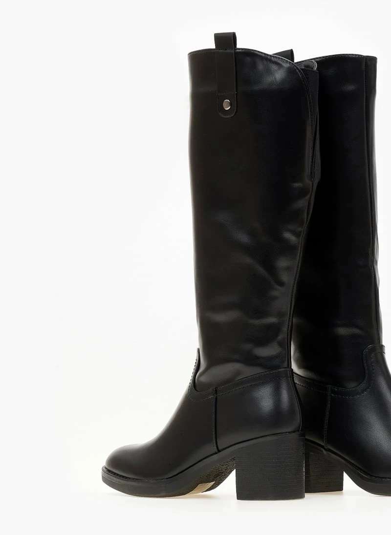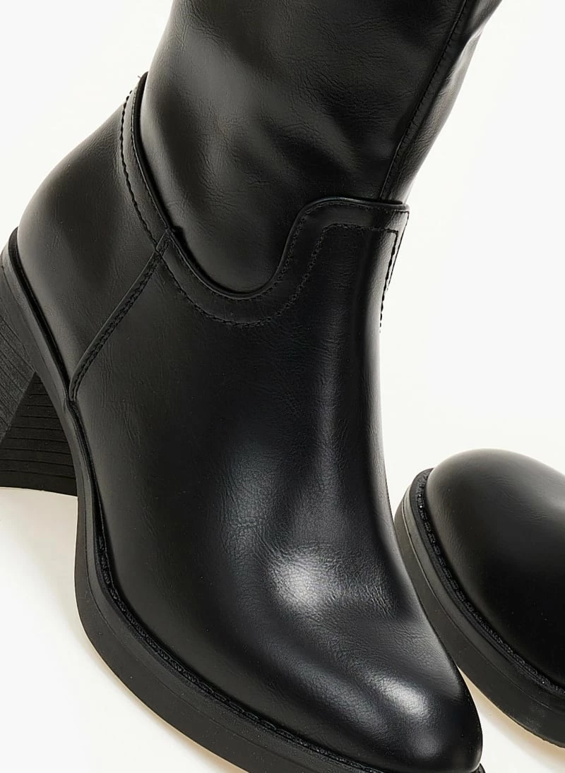 Μπότες casual με χαμηλό τετράγωνο τακούνι. Έχουν θηλάκι στο πλάι. Ελαστικό πίσω μέρος για καλύτερη εφαρμογή. Εξωτερική ραφή περιμετρικά της σόλας.
