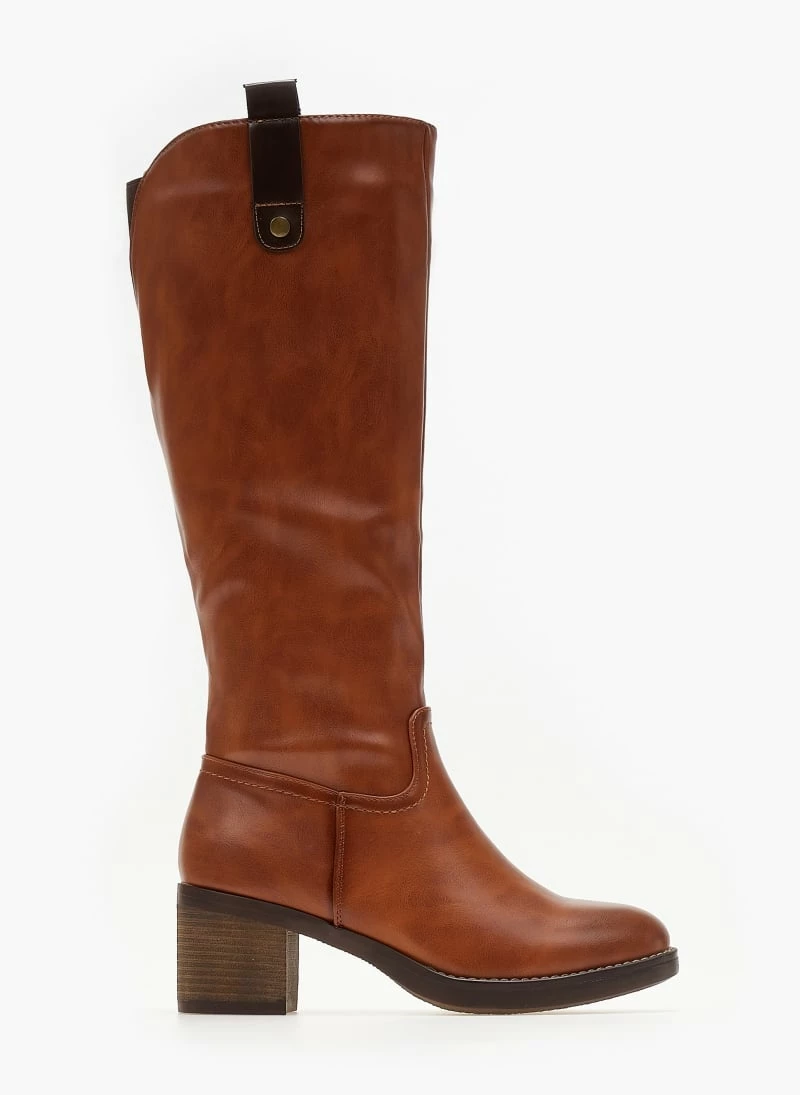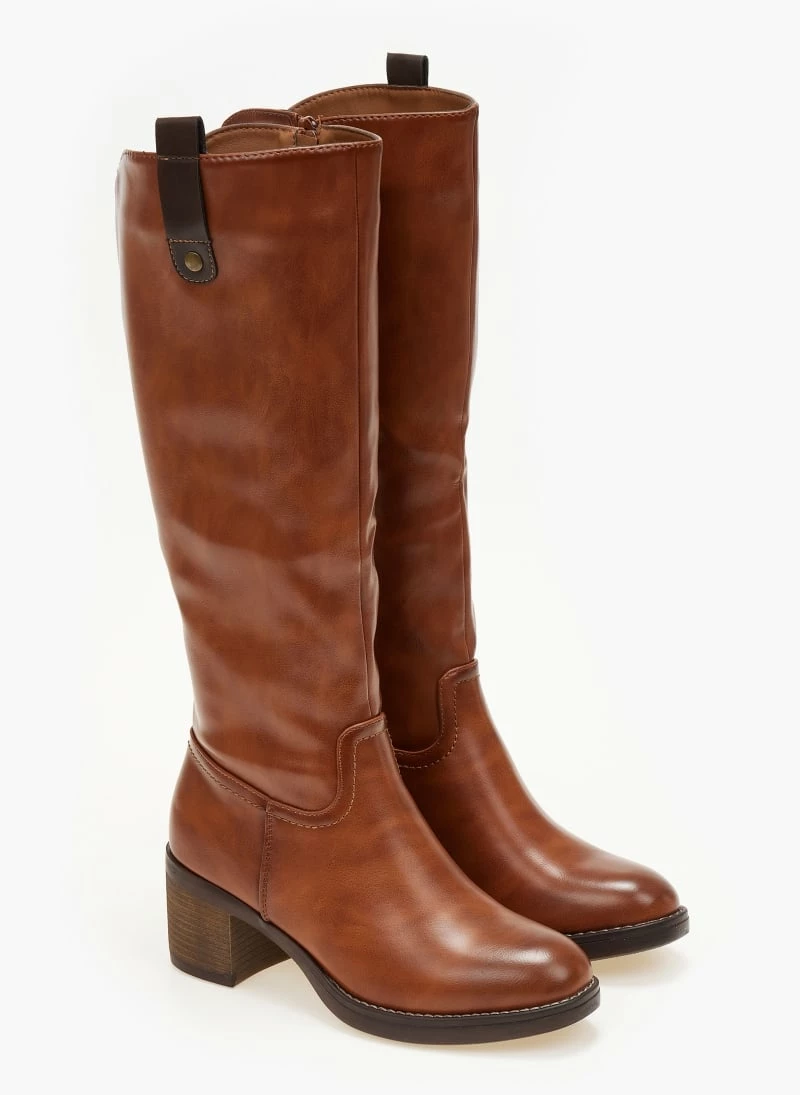 Μπότες casual με χαμηλό τετράγωνο τακούνι. Έχουν θηλάκι στο πλάι. Ελαστικό πίσω μέρος για καλύτερη εφαρμογή. Εξωτερική ραφή περιμετρικά της σόλας.