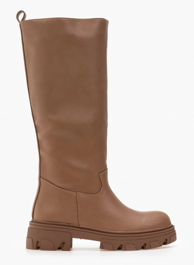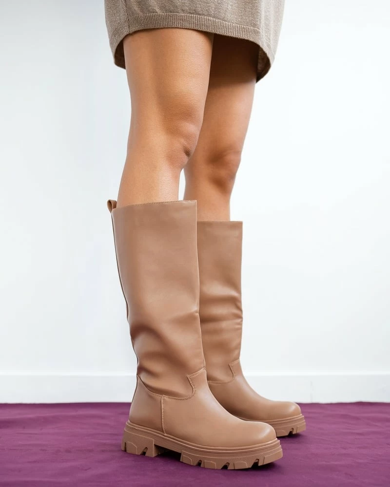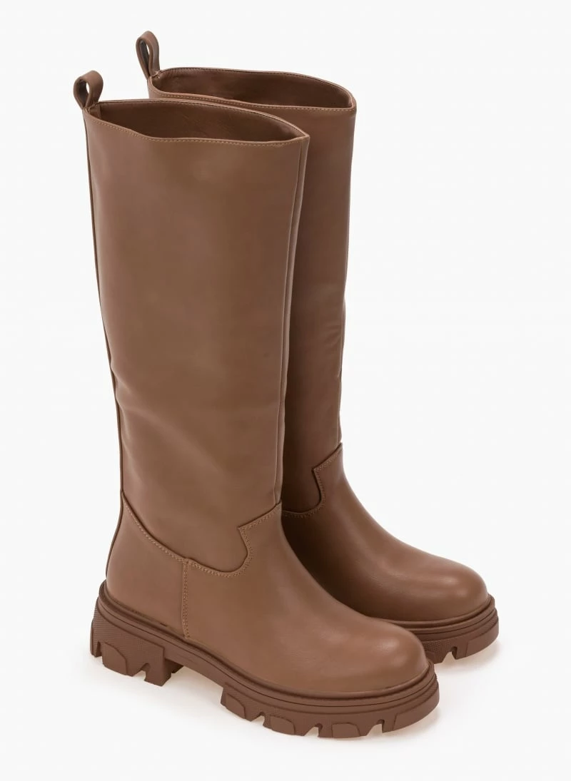 Φλατ μπότες με chunky σόλα. Δεν έχουν φερμουάρ. Στρογγυλή γραμμή.