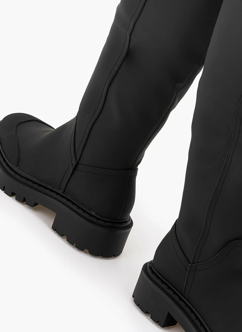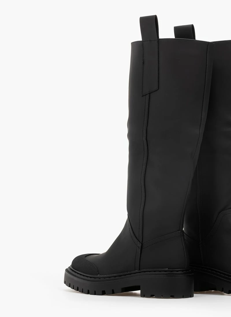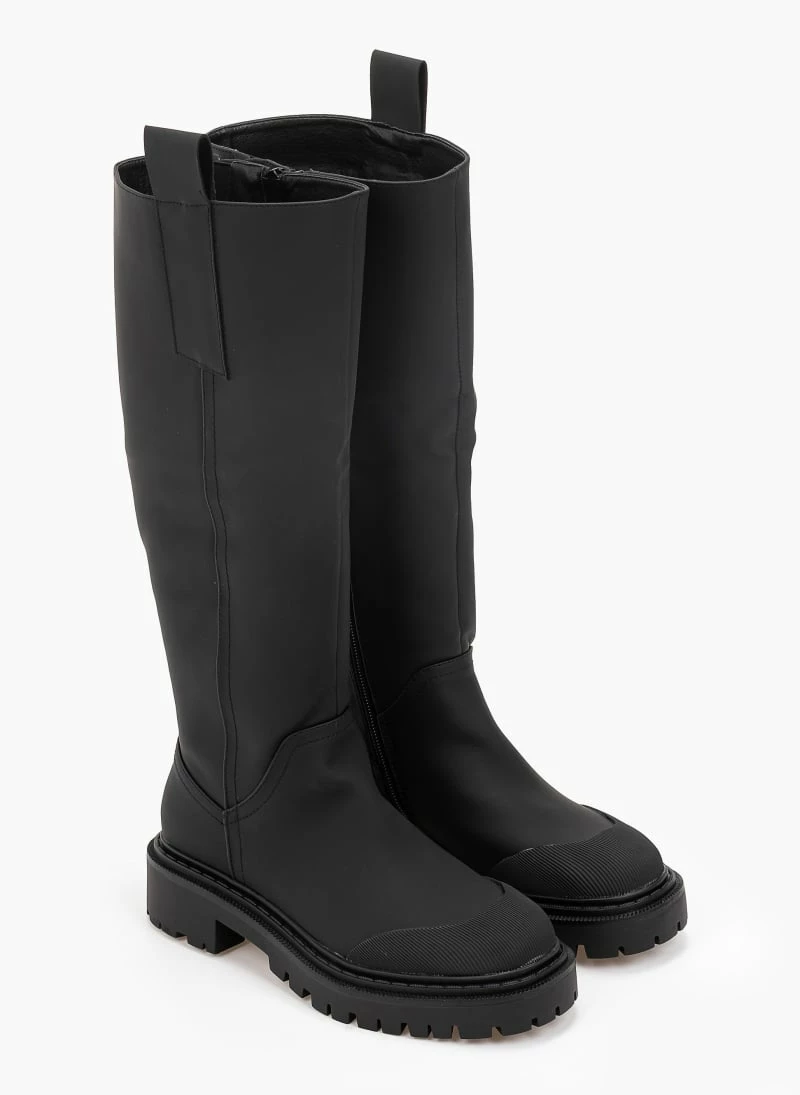 Ματ μπότες με τρακτερωτή σόλα. Έχουν θηλάκι στο τελείωμα.