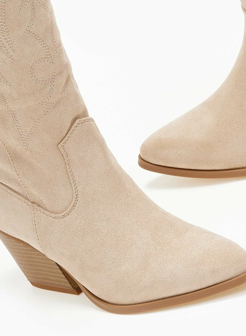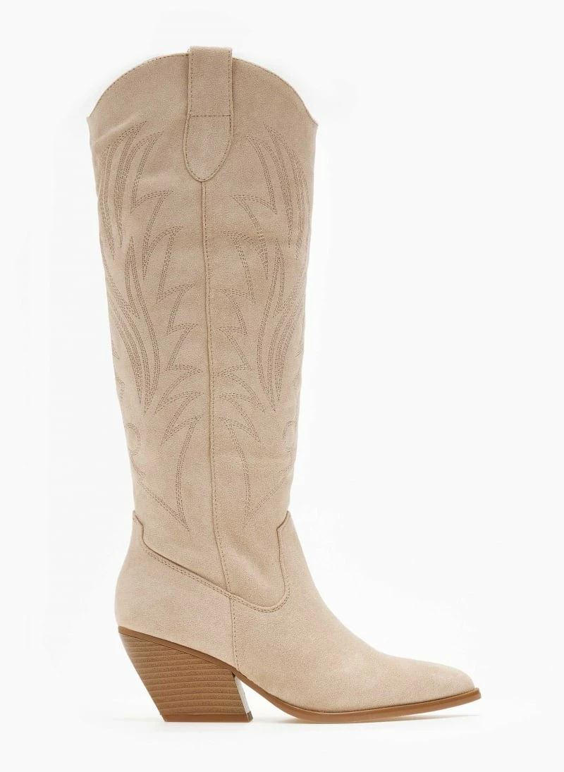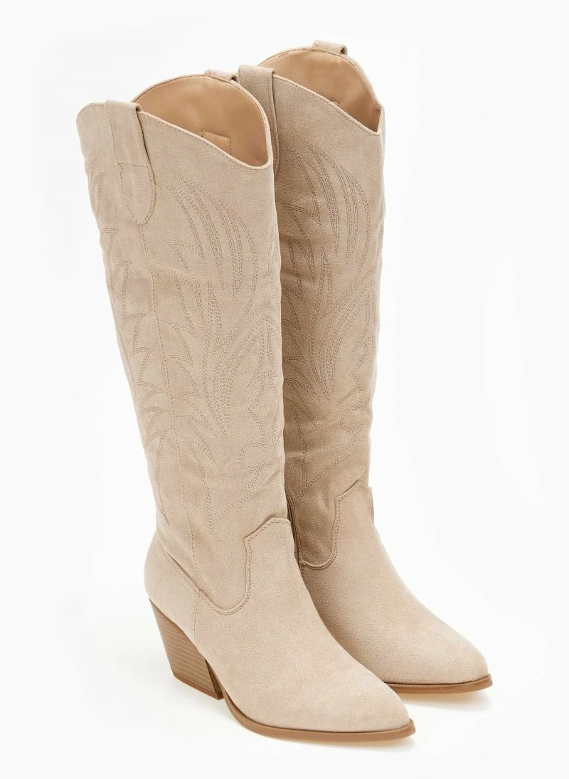 Best Pirce 🧨 The Fashion Project Μπότες Cowboy με σχέδιο στη γάμπα – Μπεζ 🔔