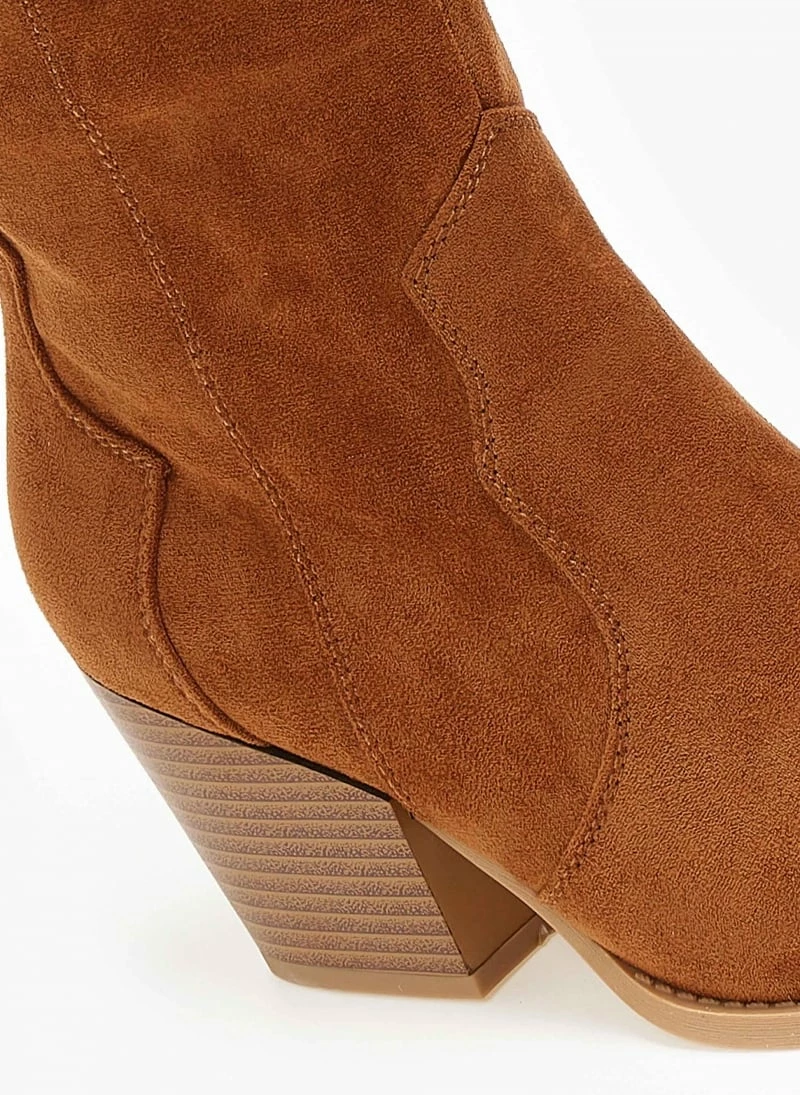 Καλύτερη πώληση 👏 The Fashion Project Μπότες Cowboy Suede με ραφές – Κάμελ 🌟