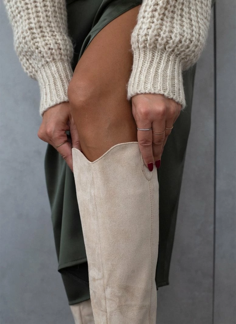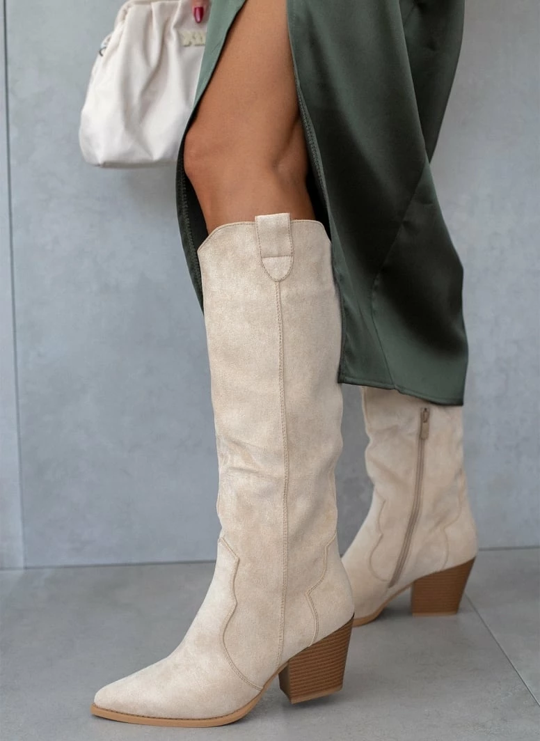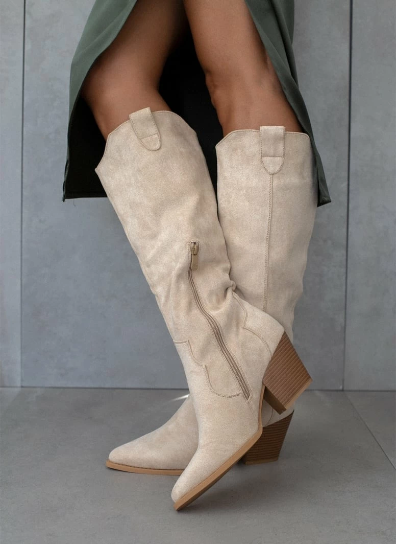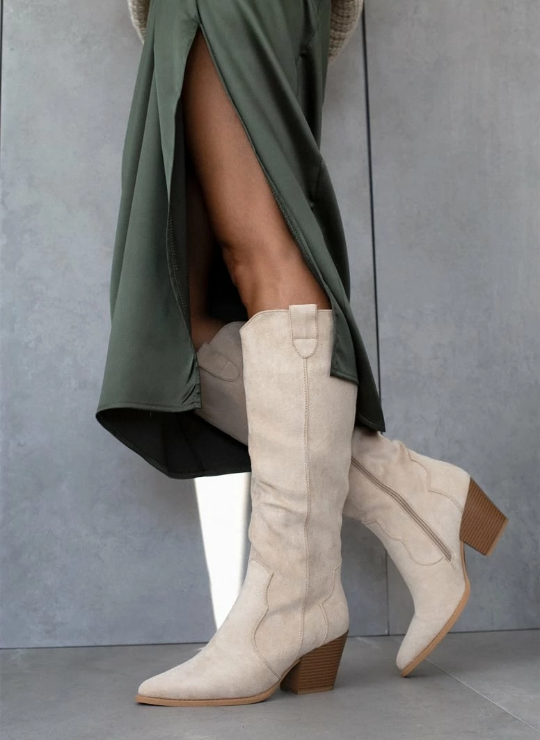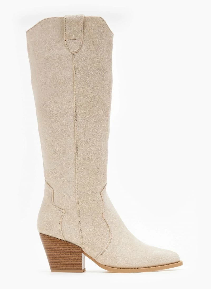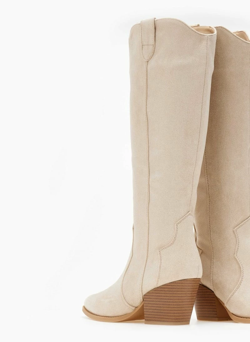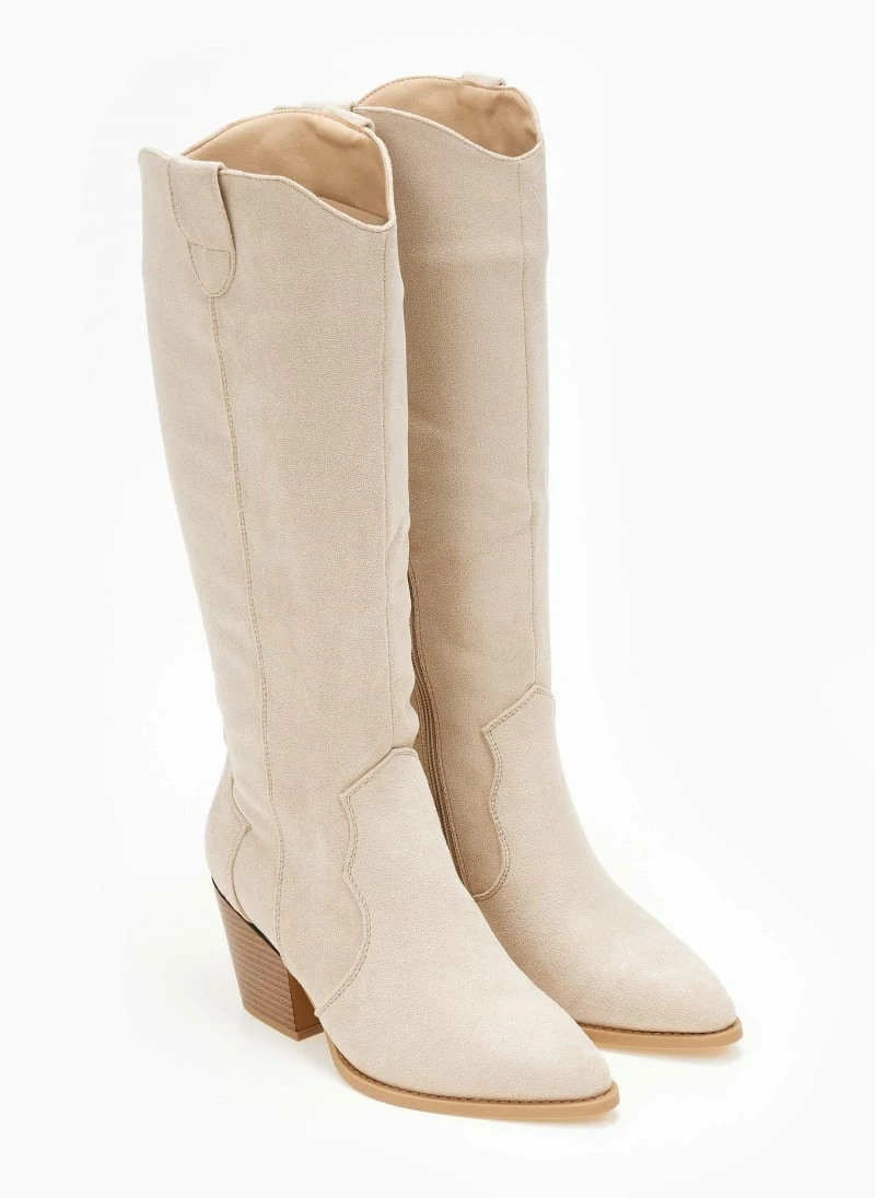Αγορά 😍 The Fashion Project Μπότες Cowboy Suede με ραφές – Μπεζ ⭐