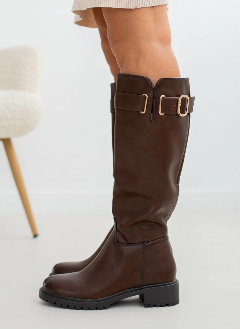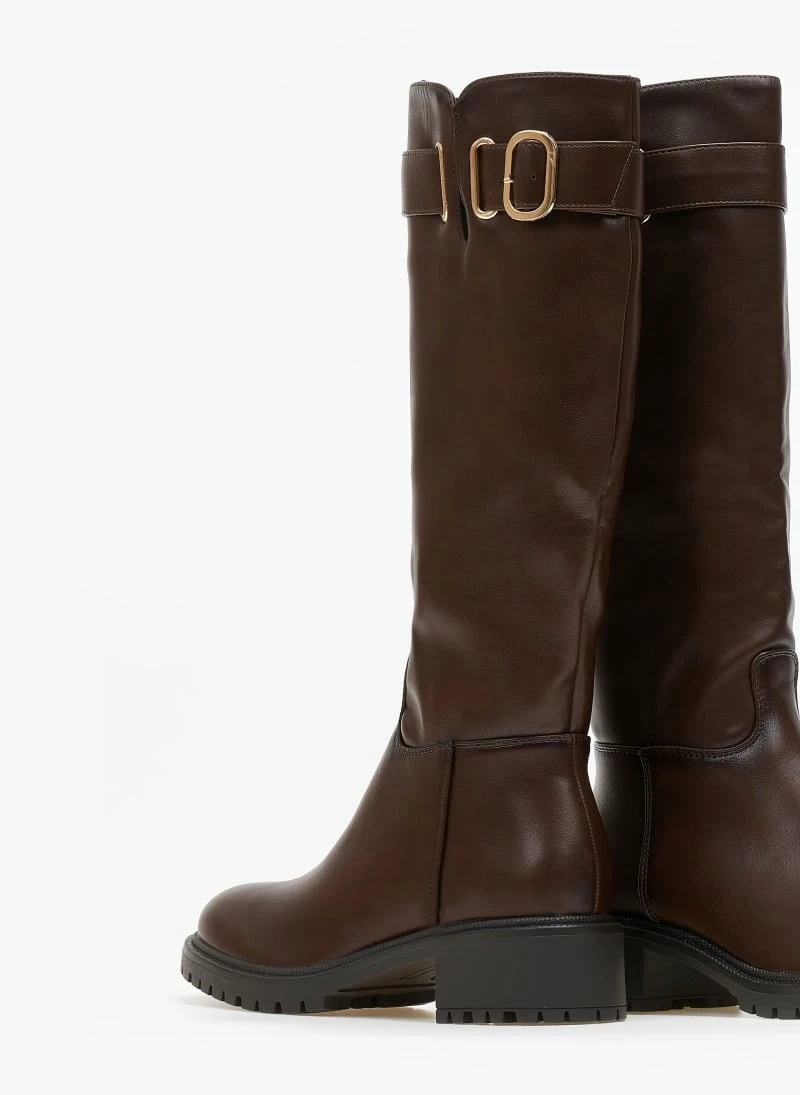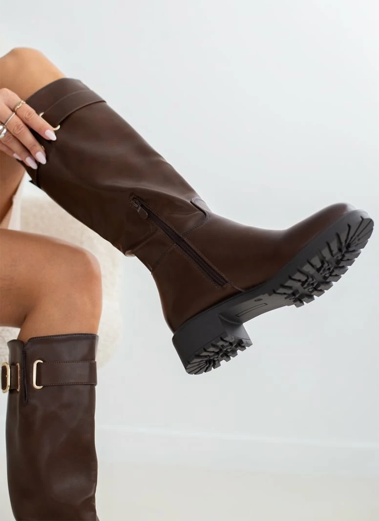 Προώθηση ✔️ The Fashion Project Μπότες φλατ με ζωνάκι – Καφέ 🎉