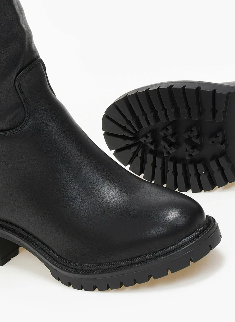 Μπότες φλατ με τρακτερωτή σόλα. Έχουν μικρό άνοιγμα με ζωνάκι στο τελείωμα.