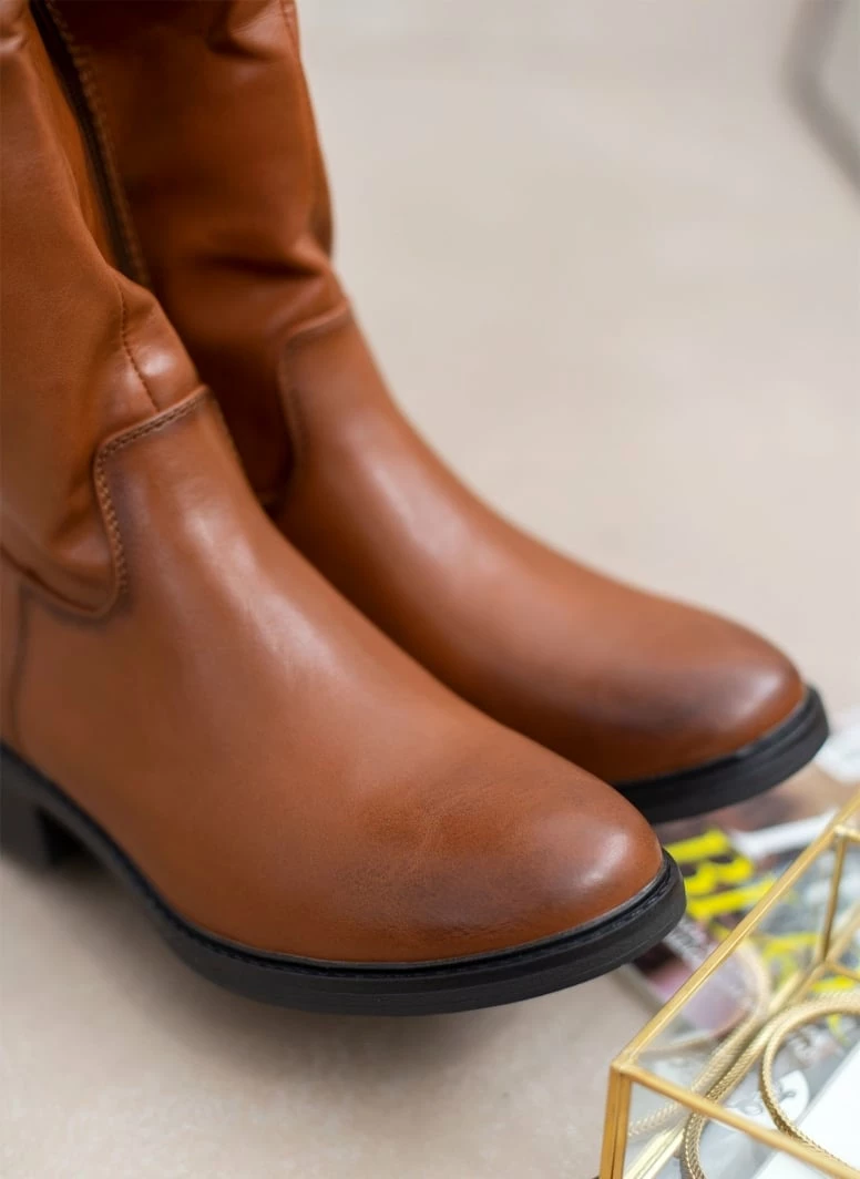 Μπότες ιππασίας με διακριτική λεπτομέρεια στο τακούνι. Στρογγυλή φόρμα.