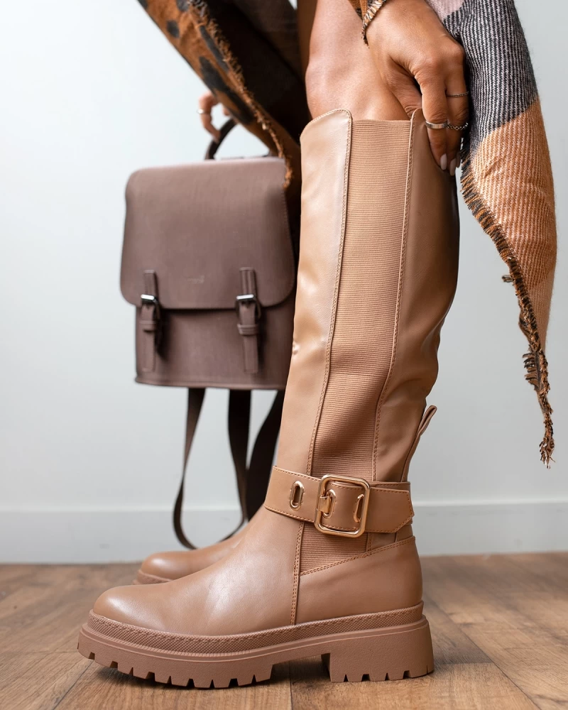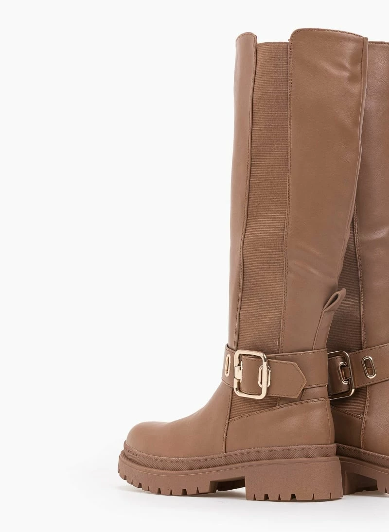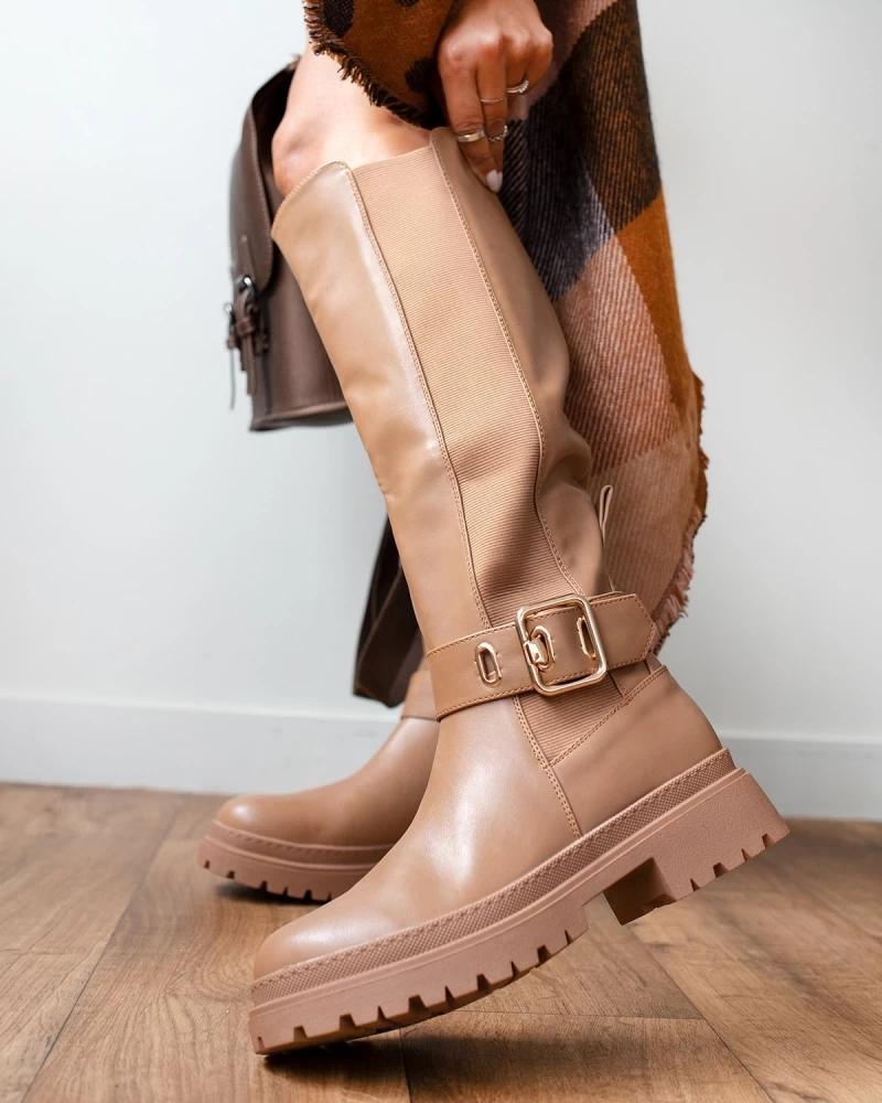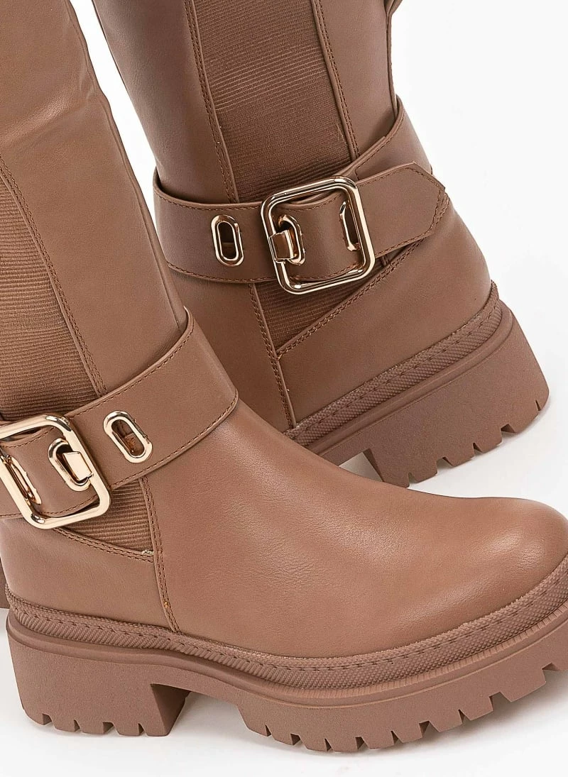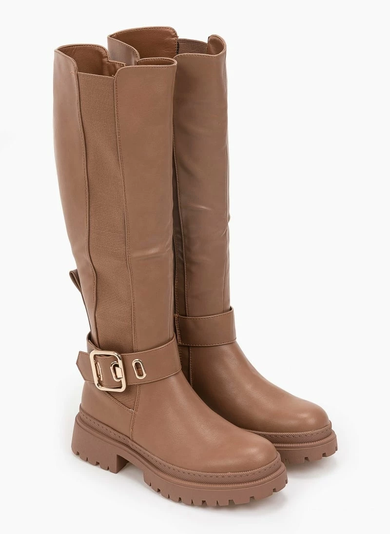 Καλύτερη πώληση ✔️ The Fashion Project Μπότες ίσιες με μεγάλο τοκά – Κάμελ 💯