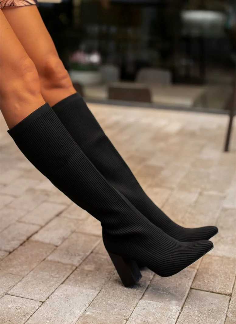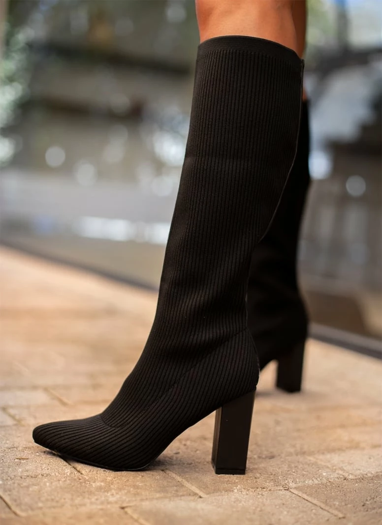 Συμφωνίες 👍 The Fashion Project Μπότες κάλτσα με τακούνι – Μαύρο 👏