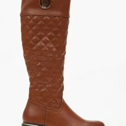 Μπότες κάλτσα από ελαστικό ύφασμα με ανάγλυφες ρίγες. Έχουν λάστιχο στο ύψος του κουτεπιέ. Ψηλή τρακτερωτή σόλα. Στρογγυλή γραμμή.