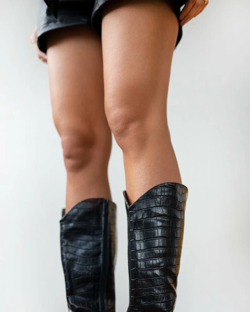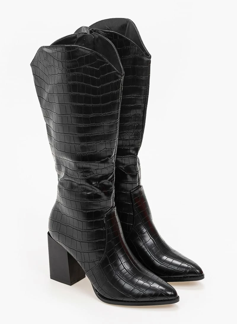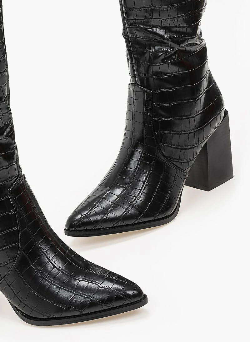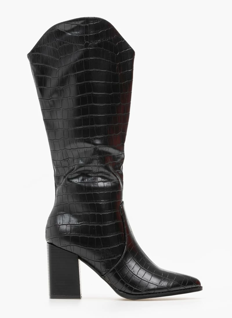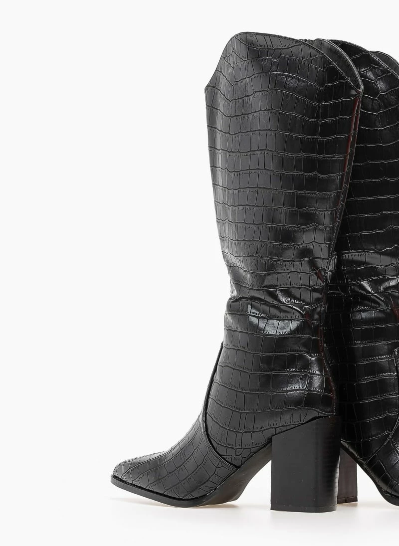 Μπότες κροκό με ψηλό τετράγωνο τακούνι.Έχουν οβάλ τελείωμα.