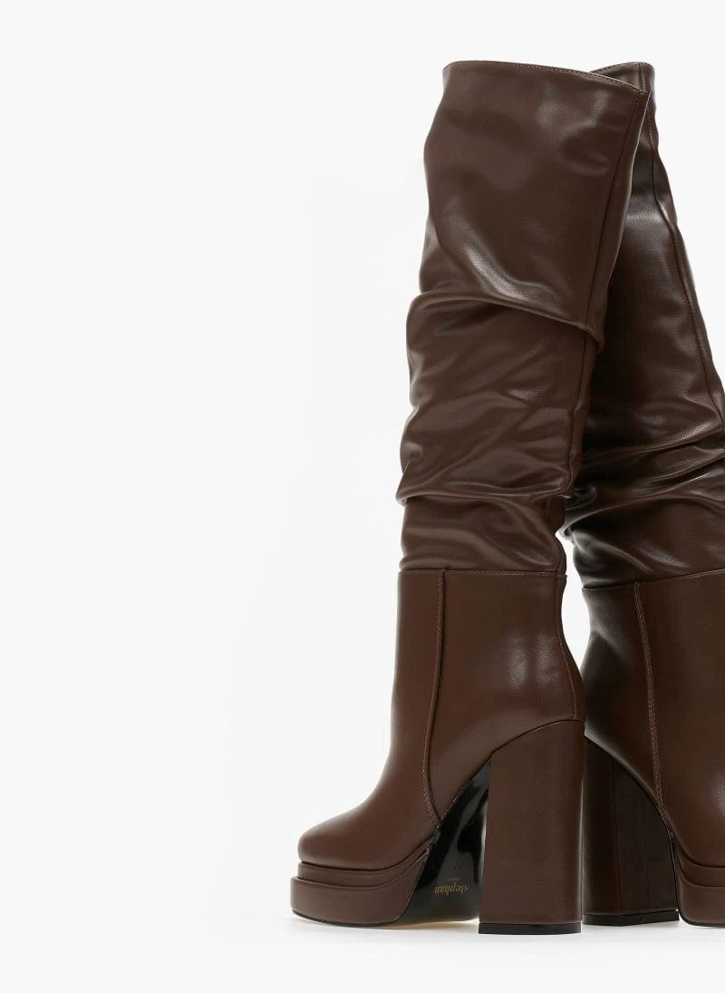 Best Pirce ⌛ The Fashion Project Μπότες με φιάπα και χοντρό τακούνι – Καφέ ⭐