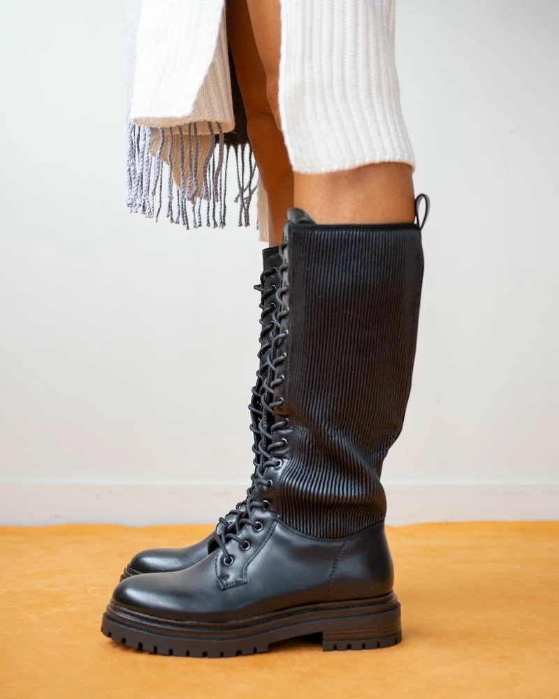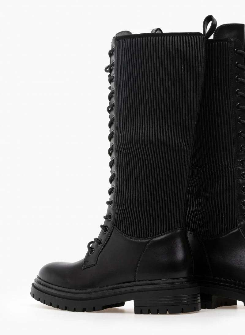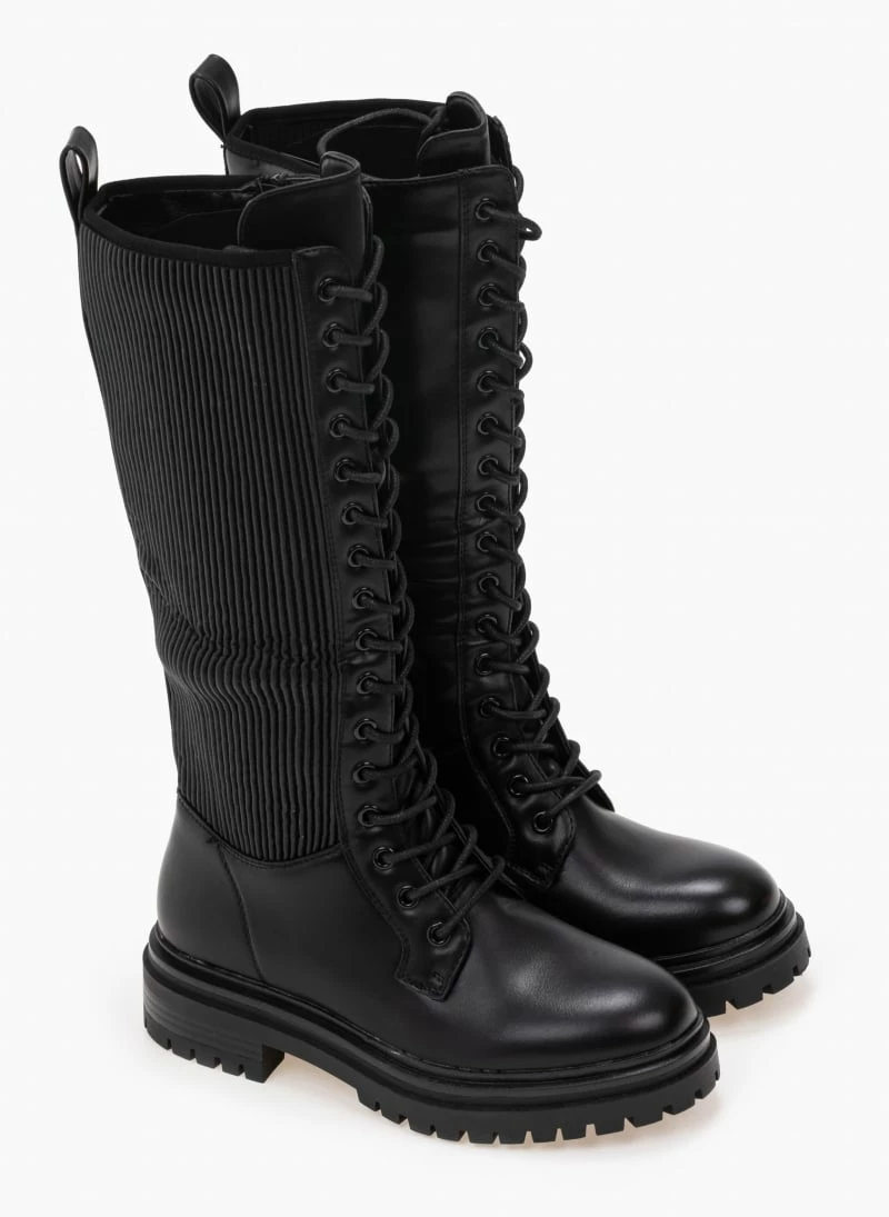 Συμφωνίες 🔔 The Fashion Project Μπότες με κορδόνια και ελαστική γάμπα – Μαύρο ⌛