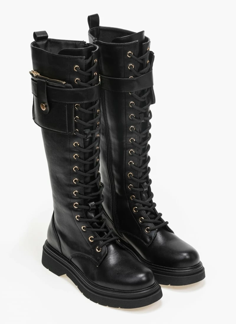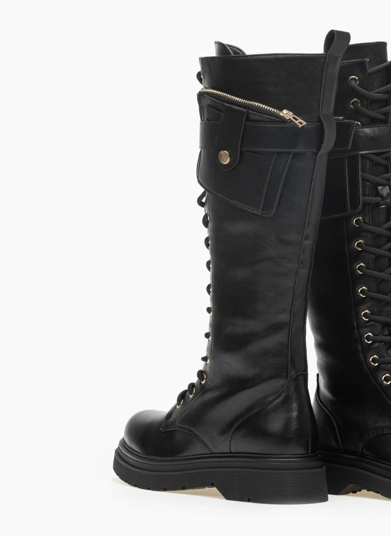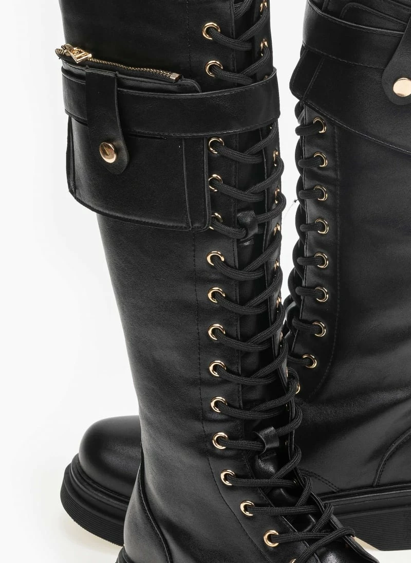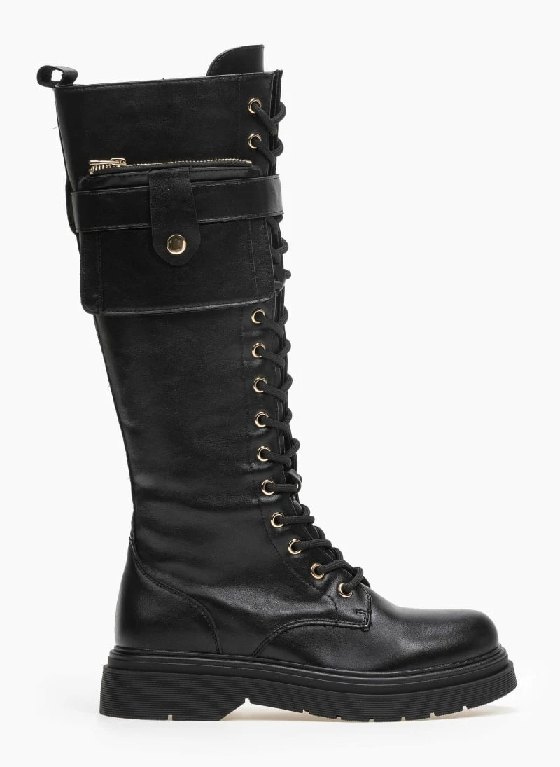 Φτηνός ⌛ The Fashion Project Μπότες με κορδόνια και πορτοφολάκι – Μαύρο 😀