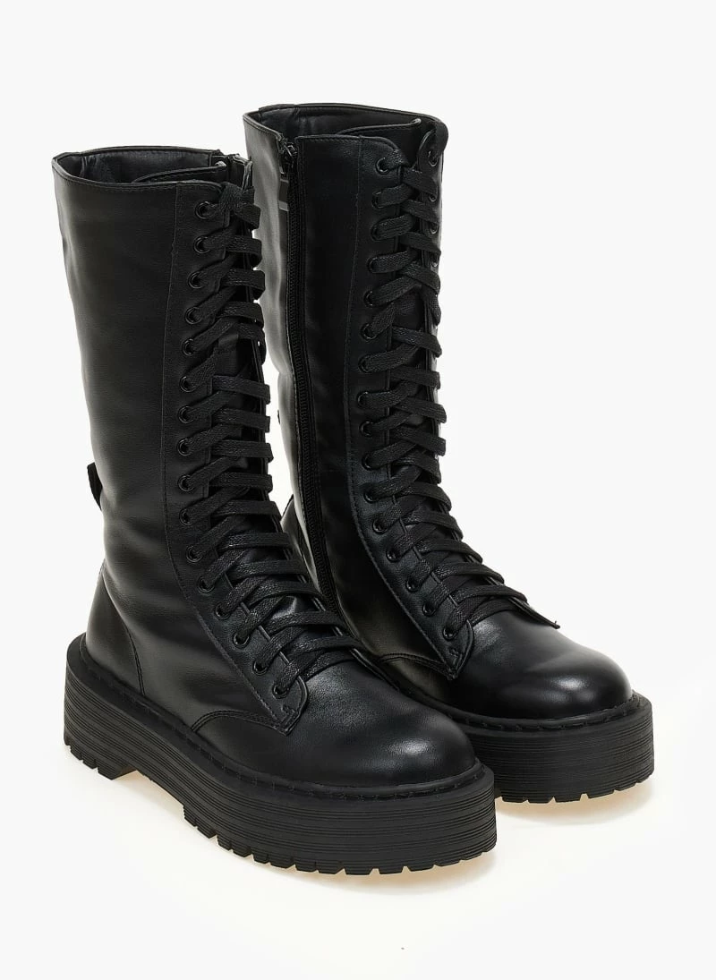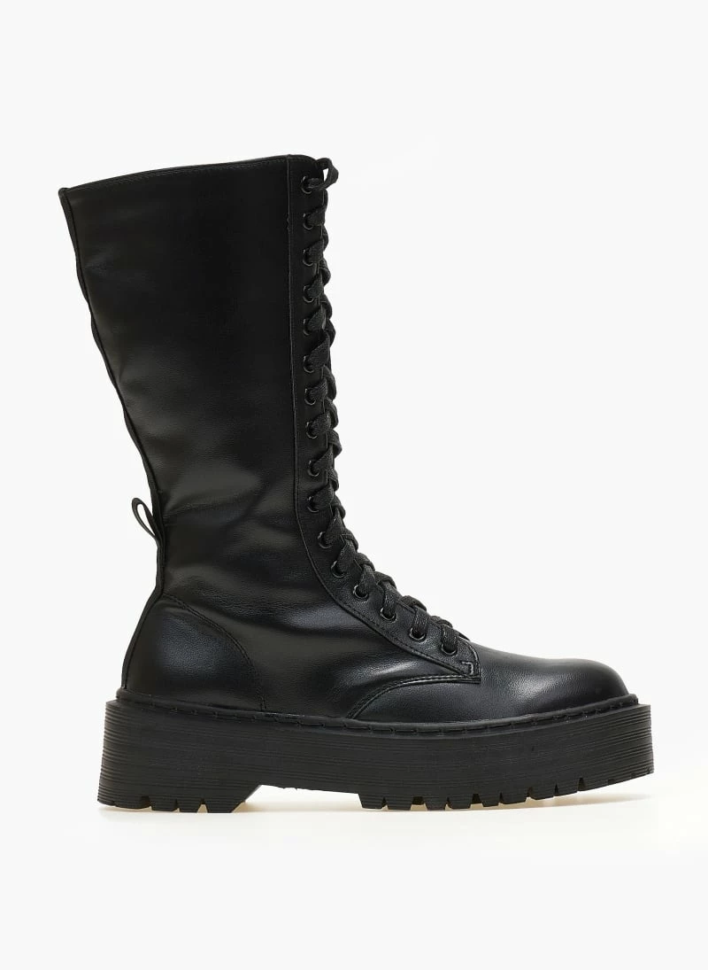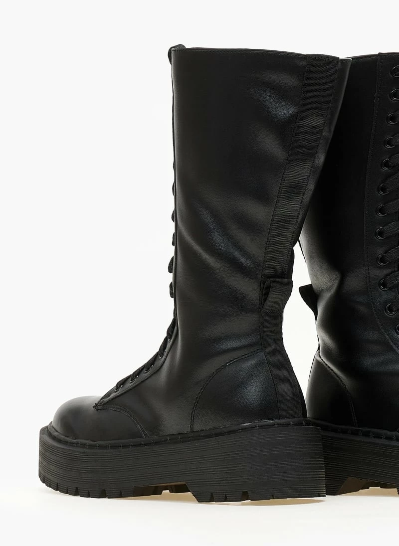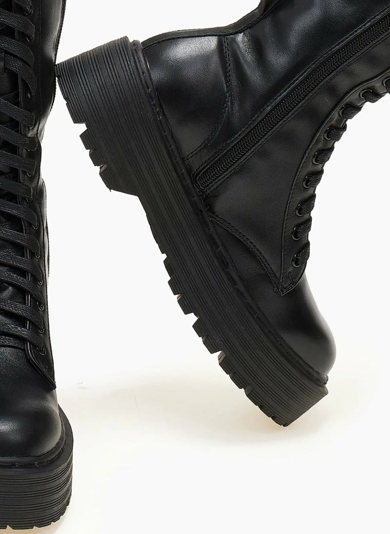 Προώθηση ❤️ The Fashion Project Μπότες με κορδόνια και ψηλή σόλα – Μαύρο 👏